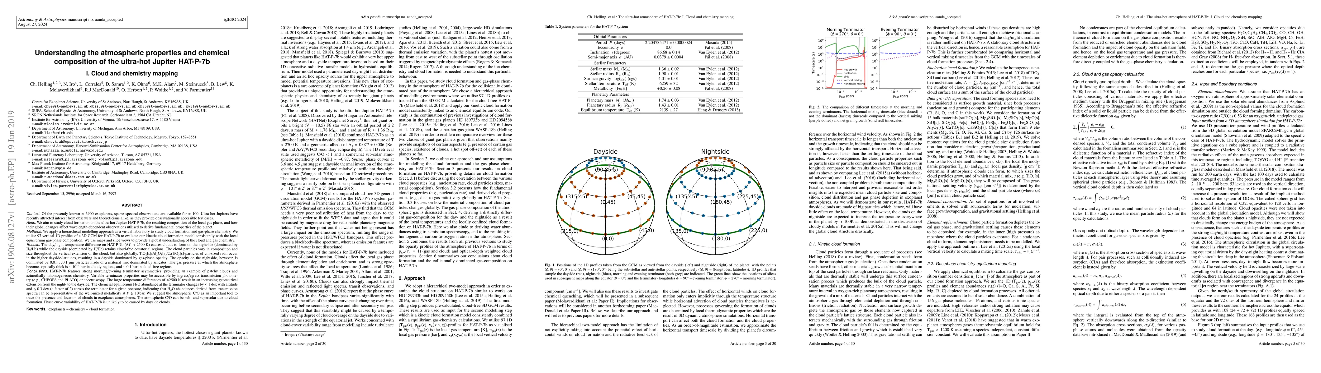 This study uses a hierarchical modelling approach to map the cloud formation and gas-phase chemistry of the ultra-hot Jupiter HAT-P-7b. It finds significant day/night temperature differences causing cloud formation on the nightside and cloud-free regions on the dayside, with cloud particles varying in composition and size. The atmosphere exhibits strong terminator asymmetries and patchy clouds, suggesting the atmospheric C/O ratio as a key indicator for cloud presence.
