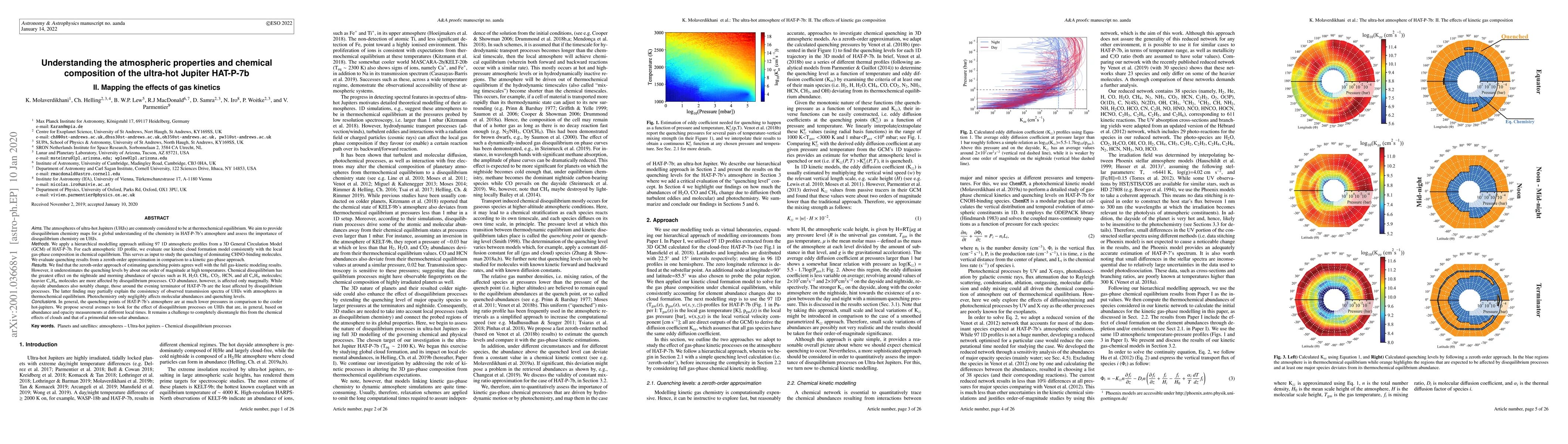 The paper presents detailed 1D chemical kinetic simulations for 38 molecules across 97 latitude and longitude points on a 3D GCM model of HAT-P-7b, providing insights into disequilibrium chemistry effects on ultra-hot Jupiters.