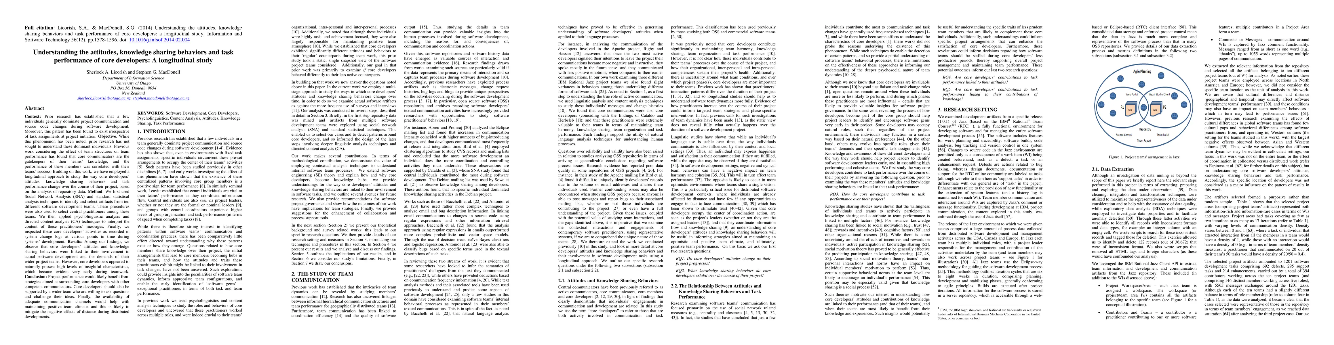 This study investigates how core developers' attitudes, knowledge sharing behaviors, and task performance evolve over time in software development projects. Findings suggest that these developers' attitudes and knowledge sharing are influenced by their involvement and project demands, while they naturally possess high levels of insight. To enhance project performance, it is recommended to support core developers with competent communicators and maintain positive team dynamics through effective communication channels.