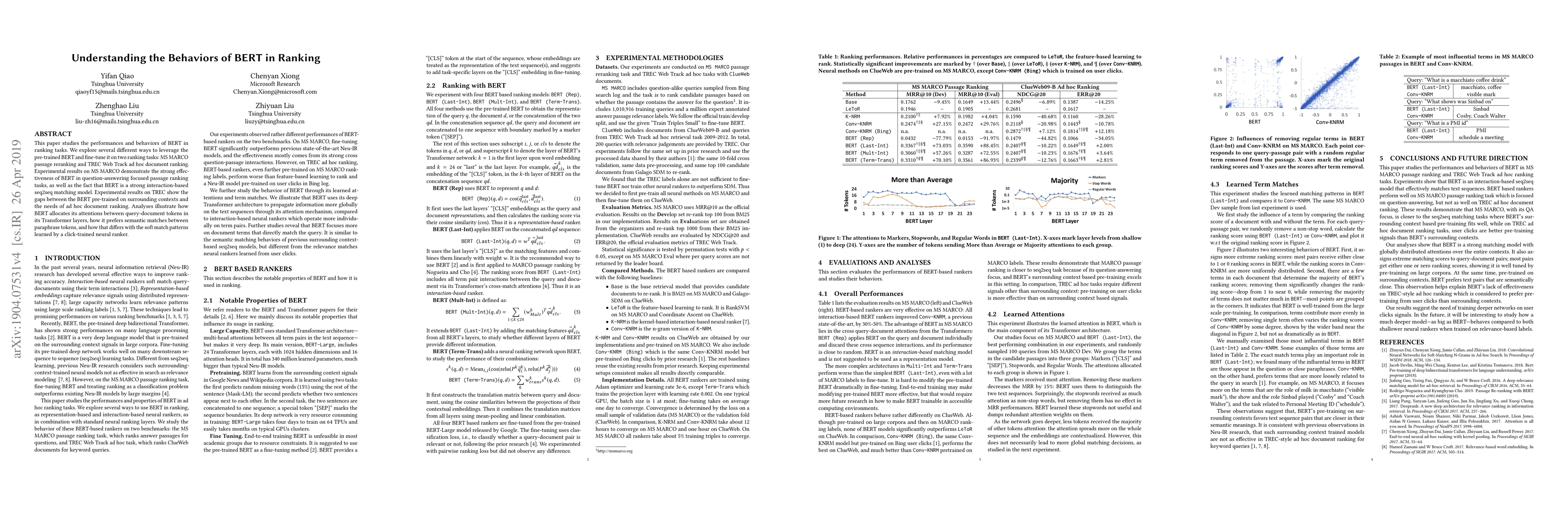 This paper investigates BERT's performance in ranking tasks, showing its effectiveness in passage reranking for MS MARCO and highlighting differences in its attention allocation compared to click-trained neural rankers for TREC Web Track ad hoc document ranking.