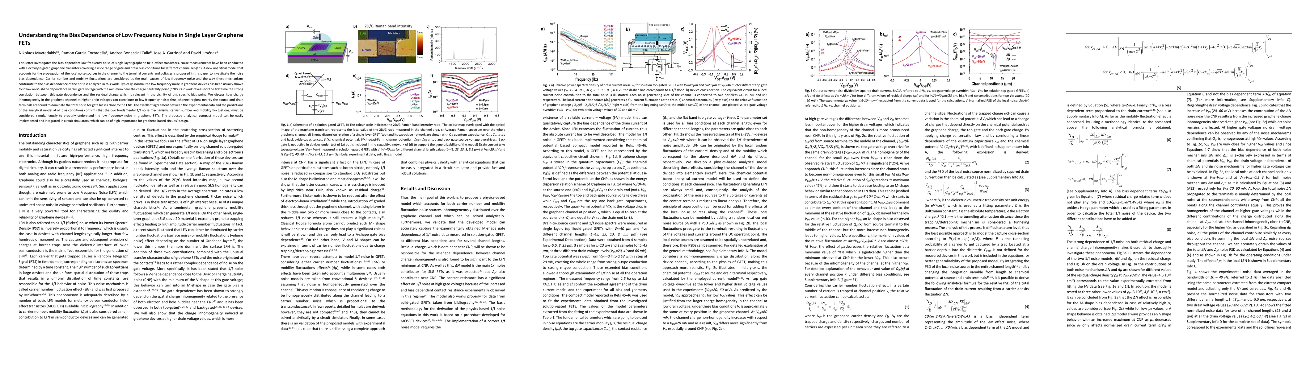 This research investigates the bias-dependent low frequency noise in single-layer graphene FETs, proposing a new analytical model to understand noise mechanisms like carrier number and mobility fluctuations. It reveals a strong correlation between M-shaped noise dependence on gate voltage and residual charge near the charge neutrality point, emphasizing the significance of charge inhomogeneity and channel regions close to terminals for noise at such biases.