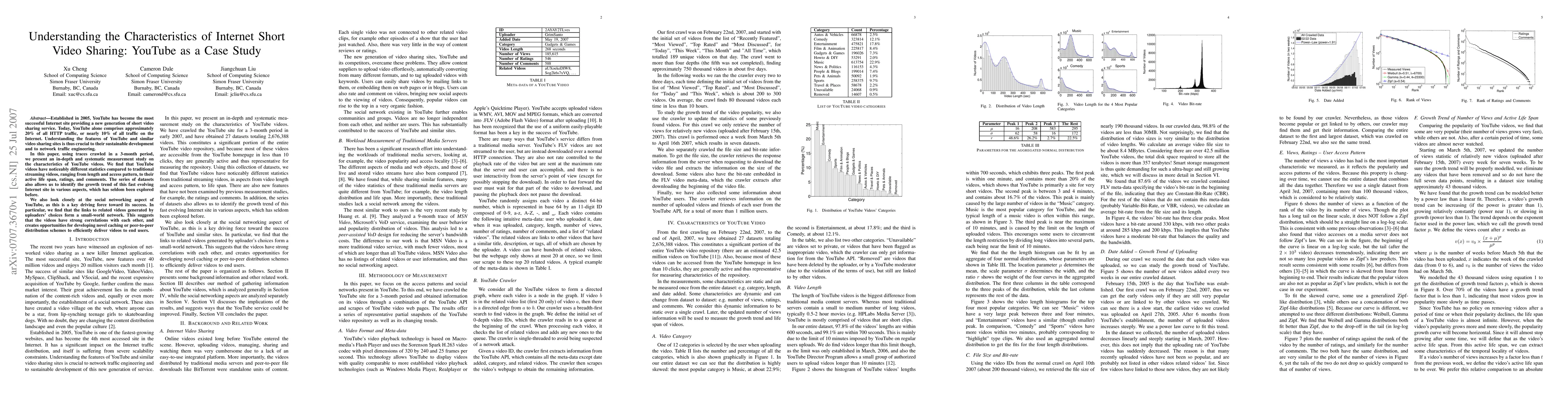 This paper conducts a comprehensive measurement study on YouTube's video sharing characteristics, revealing significant differences from traditional streaming videos in terms of length, access patterns, and social networking. It identifies growth trends and proposes caching and distribution strategies based on the small-world network of related video links.
