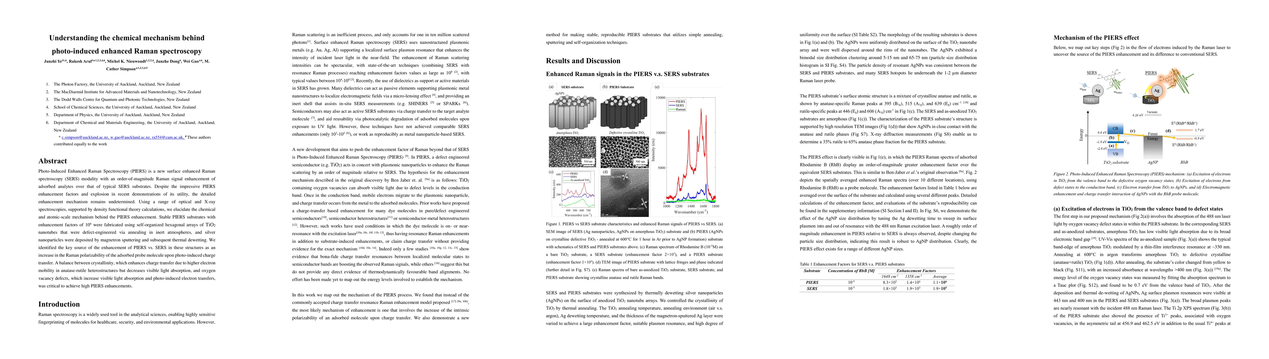 This research elucidates the mechanism behind Photo-Induced Enhanced Raman Spectroscopy (PIERS), revealing it leverages photo-induced charge transfer to boost Raman signals of adsorbed molecules. High PIERS enhancement (10^6) was achieved using defect-engineered TiO2 nanotube arrays and silver nanoparticles, balancing crystallinity and oxygen vacancies for optimal performance.
