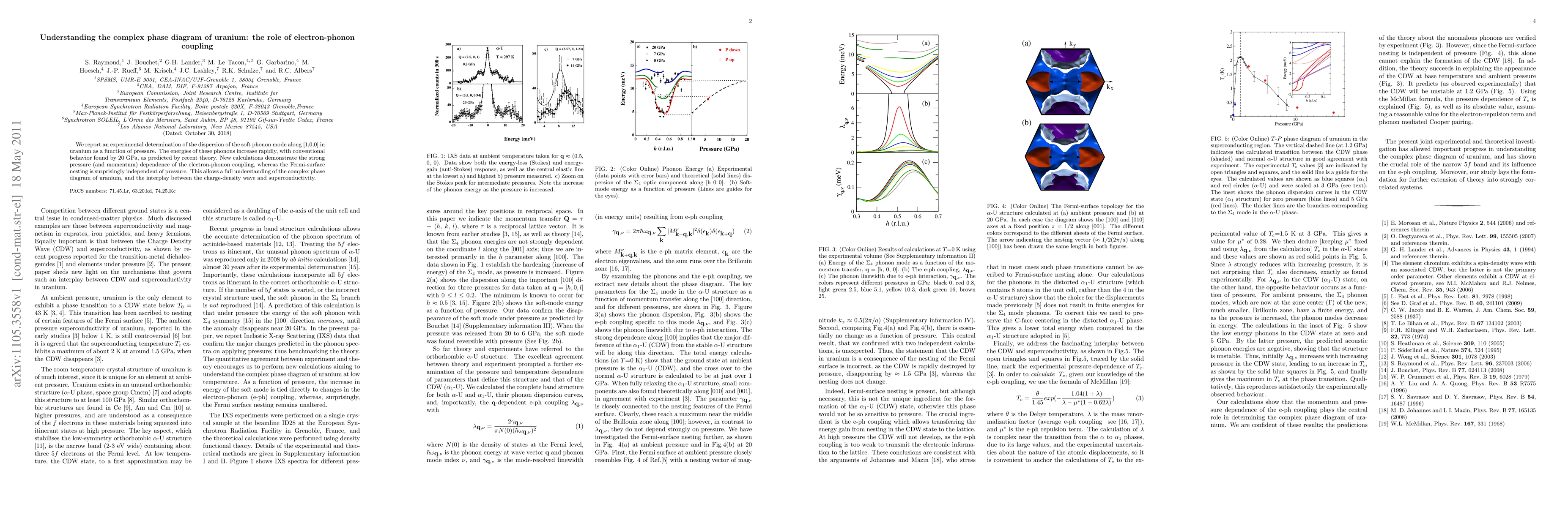 We report an experimental determination of the dispersion of the soft phonon mode along [1,0,0] in uranium as a function of pressure. The energies of these phonons increase rapidly, with conventional behavior found by 20 GPa, as predicted by recent theory. New calculations demonstrate the strong pressure (and momentum) dependence of the electron-phonon coupling, whereas the Fermi-surface nesting is surprisingly independent of pressure. This allows a full understanding of the complex phase diagram of uranium, and the interplay between the charge-density wave and superconductivity.