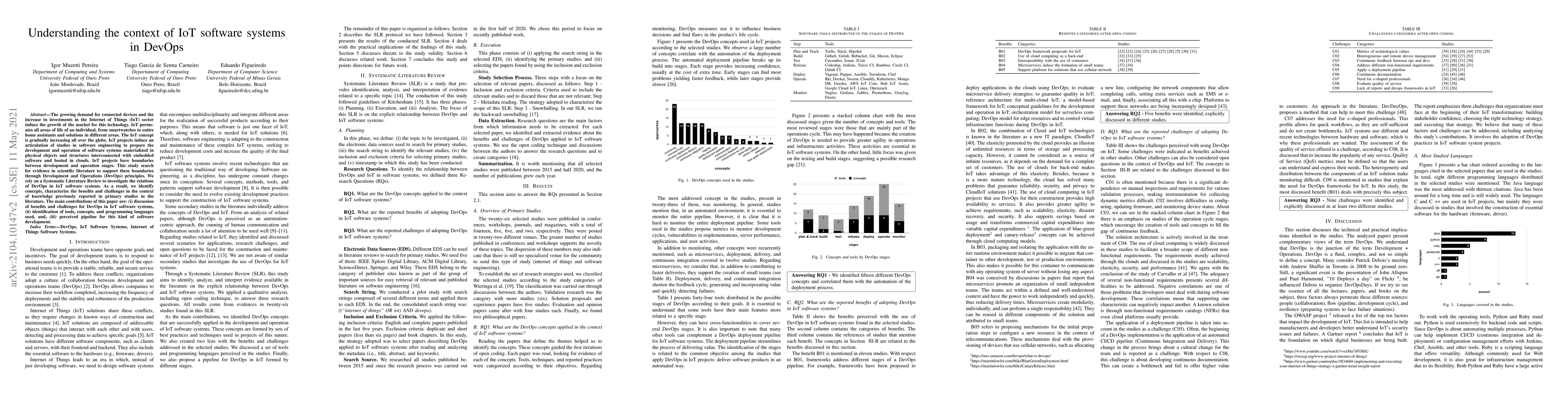 This paper explores the integration of DevOps principles in IoT software systems through a systematic literature review, identifying benefits, challenges, tools, and programming languages used, and proposing a perceived development pipeline for IoT software.