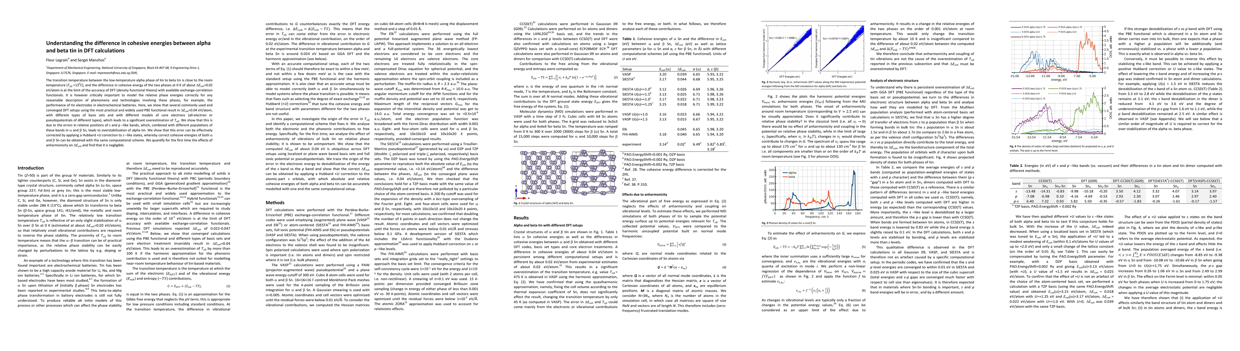This study investigates the cohesive energy difference between alpha and beta tin phases using DFT calculations, revealing that common DFT setups overestimate the energy difference by 0.04 eV/atom due to errors in band positioning. Correcting these errors with a Hubbard +U correction on s-like states provides accurate cohesive energies, highlighting the importance of precise phase energy modeling for applications like tin electrodes in batteries.