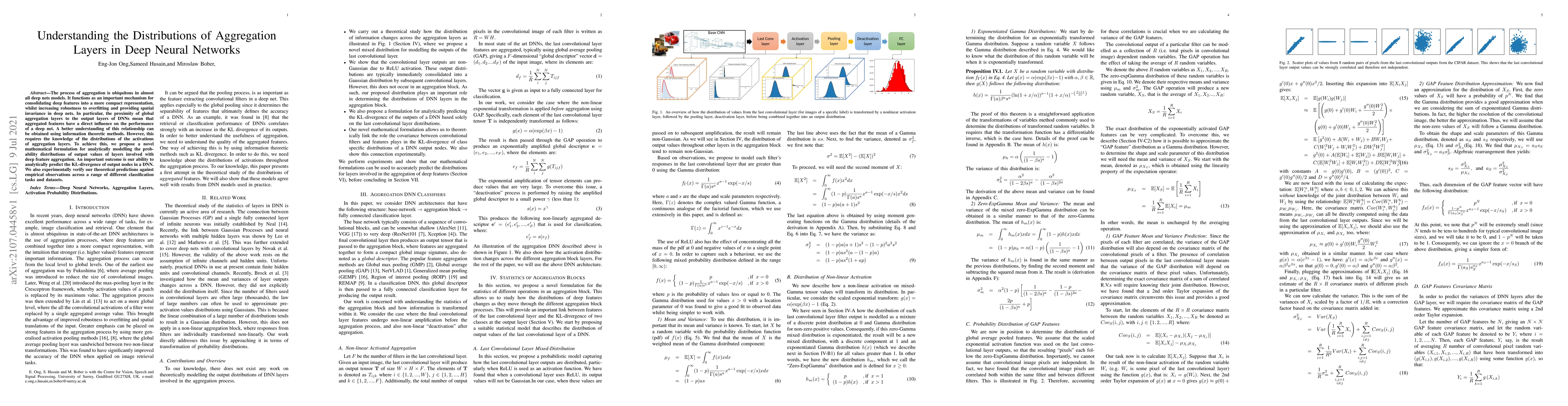 This paper proposes a novel mathematical formulation to analytically model the probability distributions of activations in deep neural network aggregation layers, aiming to understand their influence on network performance. The authors also demonstrate the ability to predict KL-divergence and validate their theoretical model with empirical data across various classification tasks.