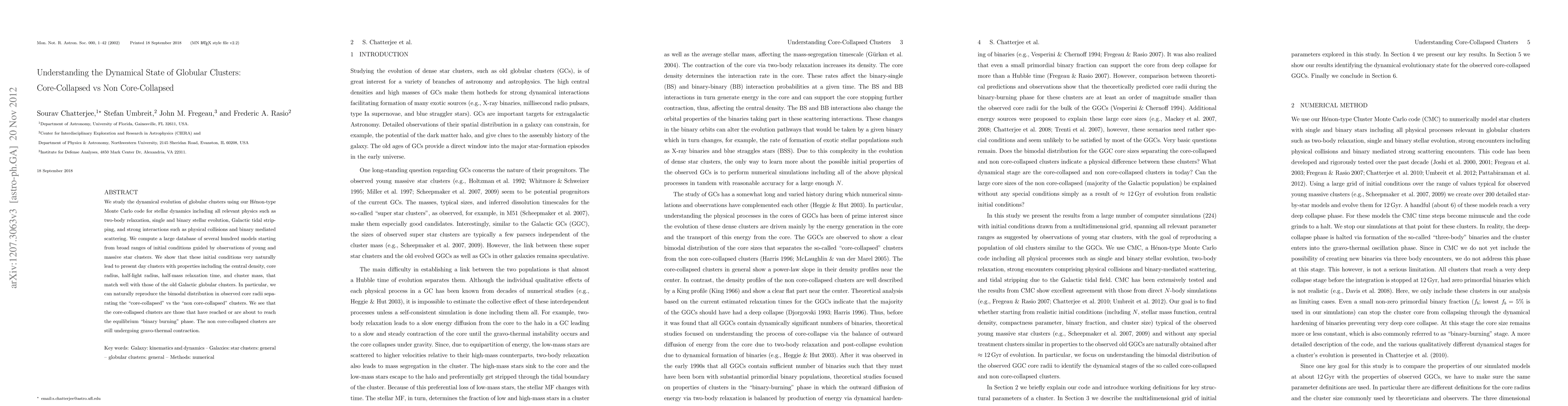 This paper uses a Monte Carlo code to simulate the dynamical evolution of globular clusters, showing that initial conditions lead to clusters with properties matching old Galactic globular clusters. It reveals a natural bimodal distribution in core radii, distinguishing "core-collapsed" clusters in the "binary burning" phase from "non core-collapsed" clusters still undergoing gravo-thermal contraction.