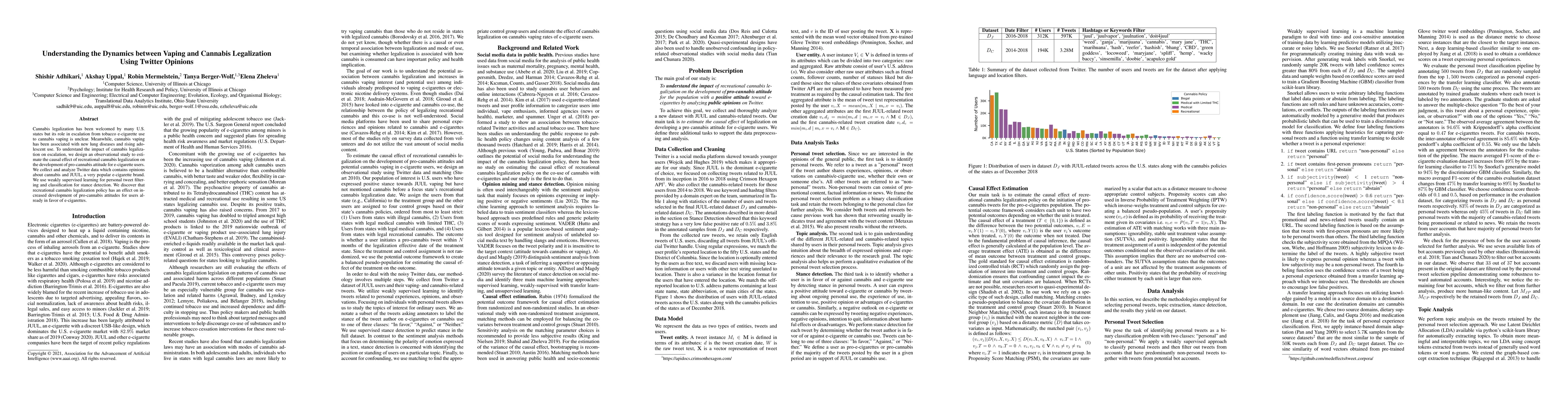 Cannabis legalization has been welcomed by many U.S. states but its role in escalation from tobacco e-cigarette use to cannabis vaping is unclear. Meanwhile, cannabis vaping has been associated with new lung diseases and rising adolescent use. To understand the impact of cannabis legalization on escalation, we design an observational study to estimate the causal effect of recreational cannabis legalization on the development of pro-cannabis attitude for e-cigarette users. We collect and analyze Twitter data which contains opinions about cannabis and JUUL, a very popular e-cigarette brand. We use weakly supervised learning for personal tweet filtering and classification for stance detection. We discover that recreational cannabis legalization policy has an effect on increased development of pro-cannabis attitudes for users already in favor of e-cigarettes.