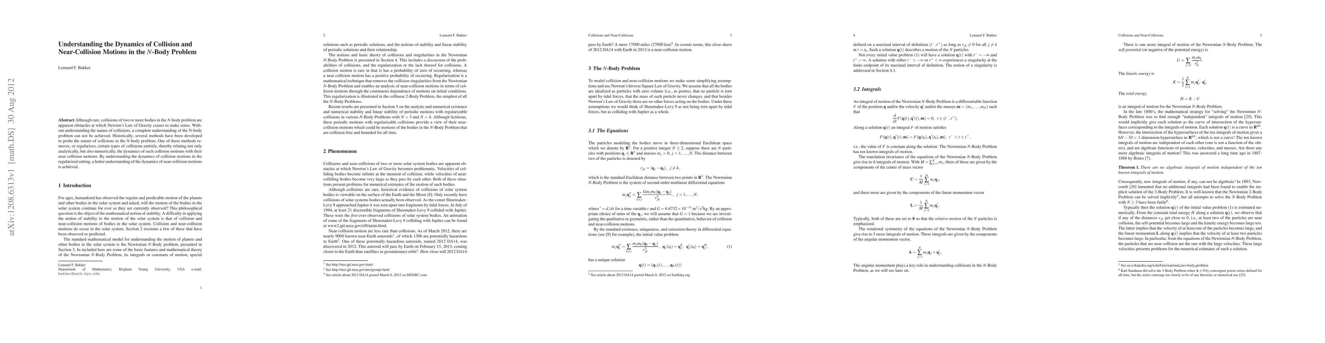 This paper explores the dynamics of collision and near-collision motions in the N-body problem, emphasizing the importance of understanding these phenomena for a complete grasp of gravitational interactions. It investigates methods that regularize collisions to analyze the relationship between collision and near-collision dynamics.