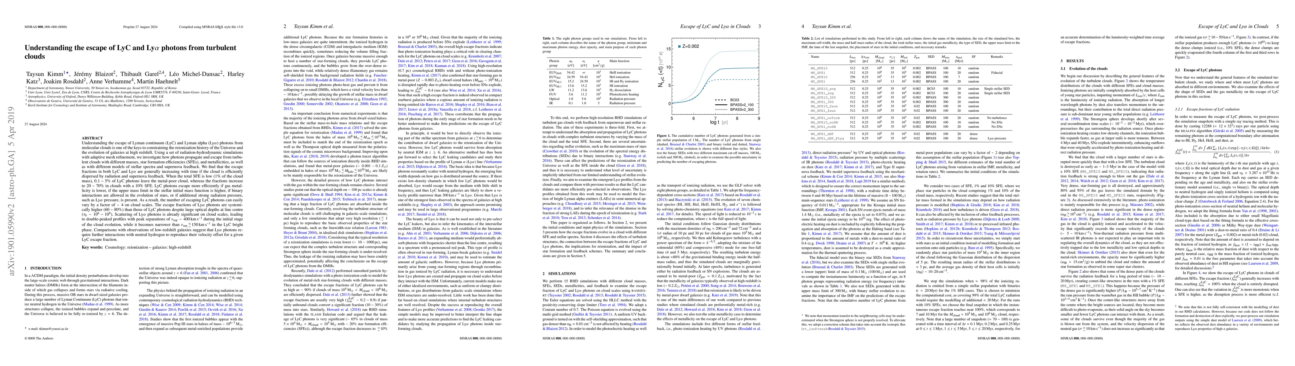 This paper investigates the escape of Lyman continuum (LyC) and Lyman alpha (Lyα) photons from turbulent molecular clouds, using radiation-hydrodynamic simulations. It finds that LyC escape fractions increase with time and cloud dispersion, with higher efficiencies in lower-metallicity clouds and higher star formation efficiencies.