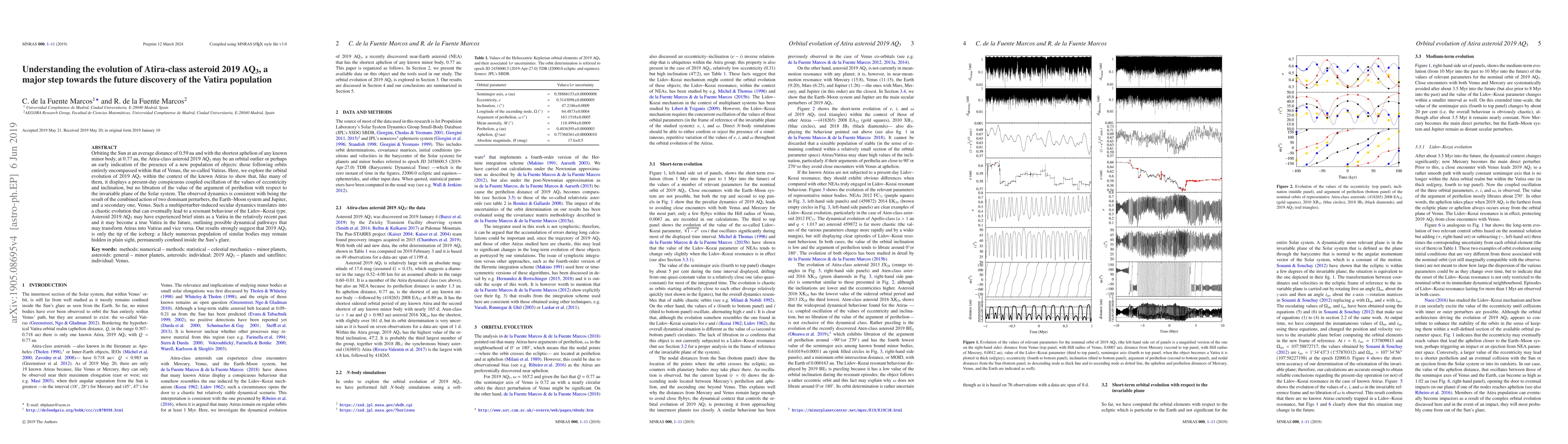 The research examines asteroid 2019 AQ3, an Atira-class asteroid with an unusually short aphelion, suggesting it might be an early sign of a new population, Vatiras, orbiting within Venus' path. The study reveals its orbital dynamics, influenced by Earth-Moon, Jupiter, and Venus, showing potential for Lidov-Kozai resonance. It hints at a possible large, undetected population of similar bodies trapped within Mercury and Venus' orbits.