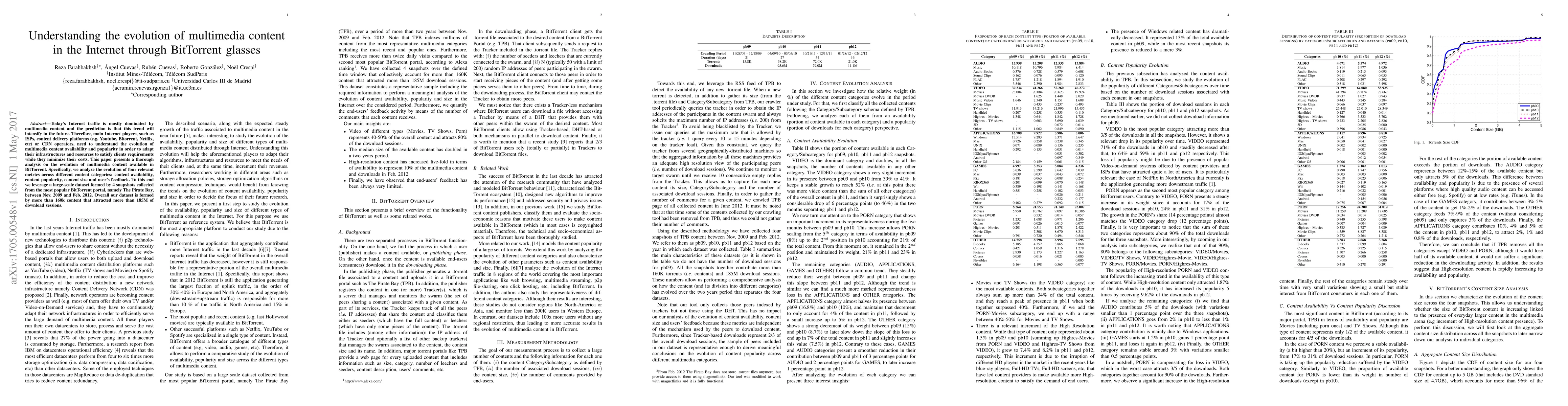 This paper analyzes the evolution of multimedia content on BitTorrent by examining four key metrics: availability, popularity, size, and user feedback. Using a dataset from The Pirate Bay spanning 2009-2012, it reveals trends in how multimedia content distribution has changed over time.