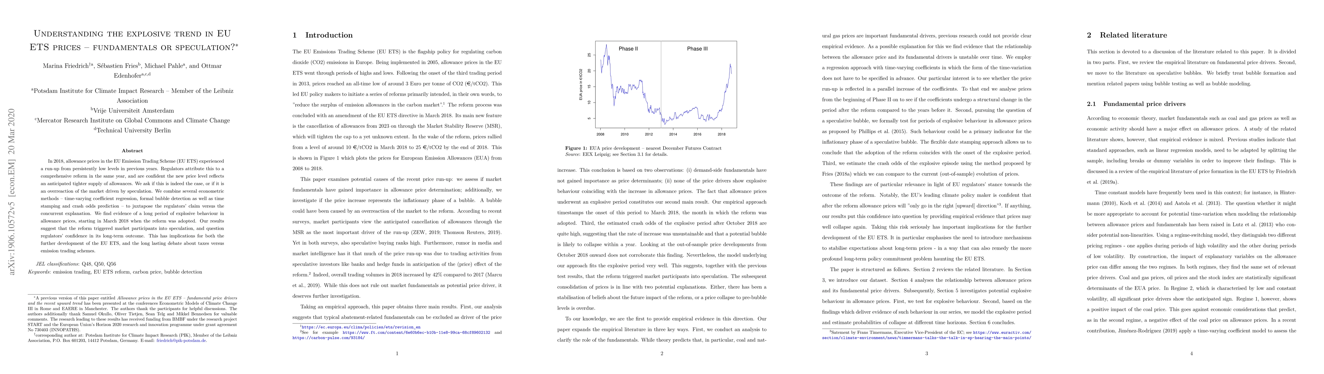 EU ETS allowance prices experienced a surge in 2018 due to speculation fueled by market participants, contradicting regulators' claim of supply constraints. This finding has implications for the EU ETS's development and the debate on taxes versus emission trading schemes.