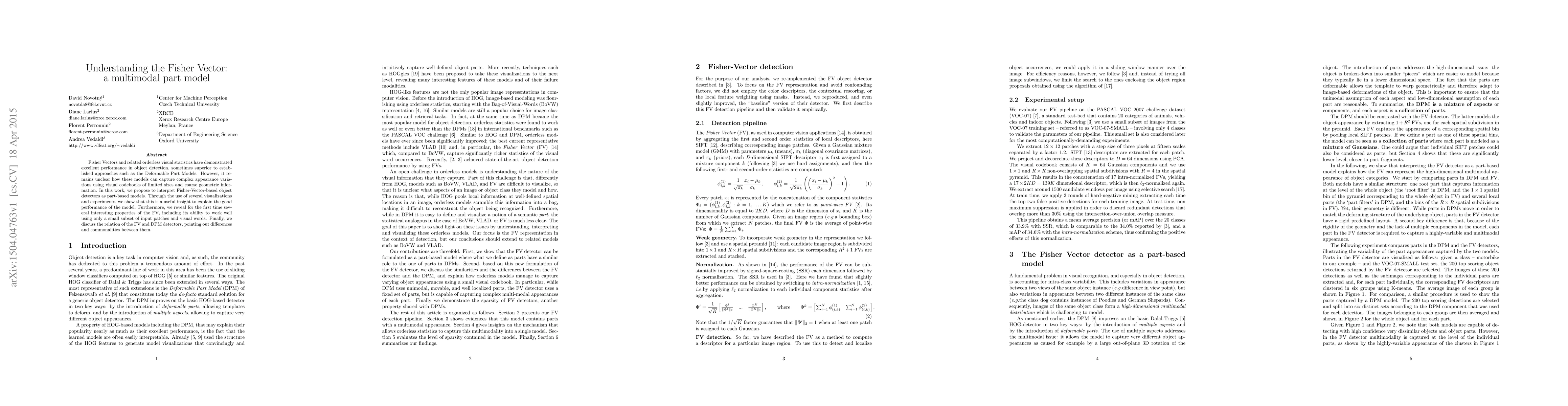 Fisher Vectors and related orderless visual statistics have demonstrated excellent performance in object detection, sometimes superior to established approaches such as the Deformable Part Models. However, it remains unclear how these models can capture complex appearance variations using visual codebooks of limited sizes and coarse geometric information. In this work, we propose to interpret Fisher-Vector-based object detectors as part-based models. Through the use of several visualizations and experiments, we show that this is a useful insight to explain the good performance of the model. Furthermore, we reveal for the first time several interesting properties of the FV, including its ability to work well using only a small subset of input patches and visual words. Finally, we discuss the relation of the FV and DPM detectors, pointing out differences and commonalities between them.