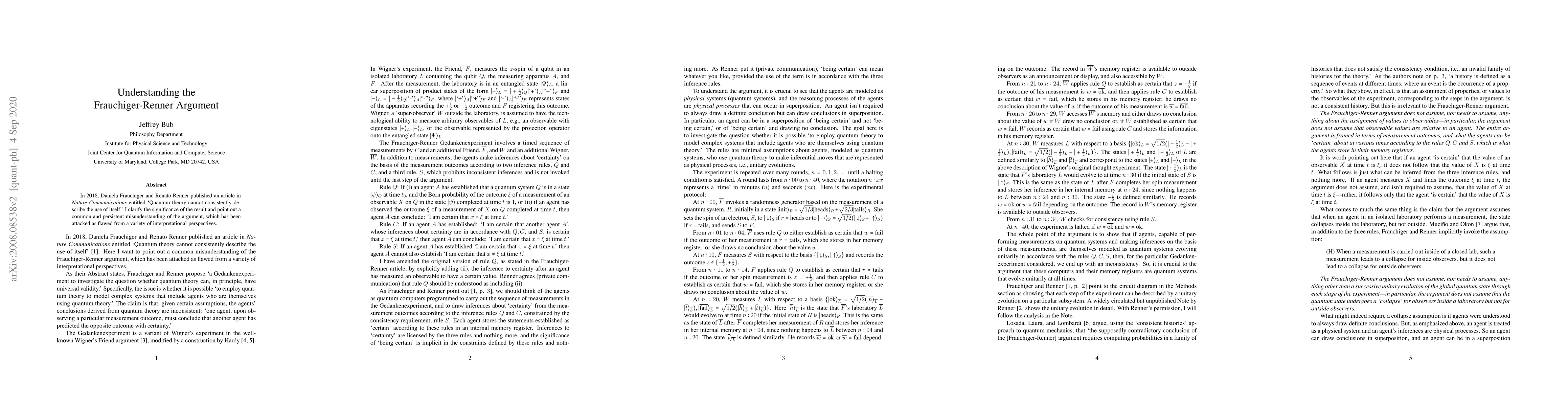 In 2018, Daniela Frauchiger and Renato Renner published an article in Nature Communications entitled `Quantum theory cannot consistently describe the use of itself.' I clarify the significance of the result and point out a common and persistent misunderstanding of the argument, which has been attacked as flawed from a variety of interpretational perspectives.