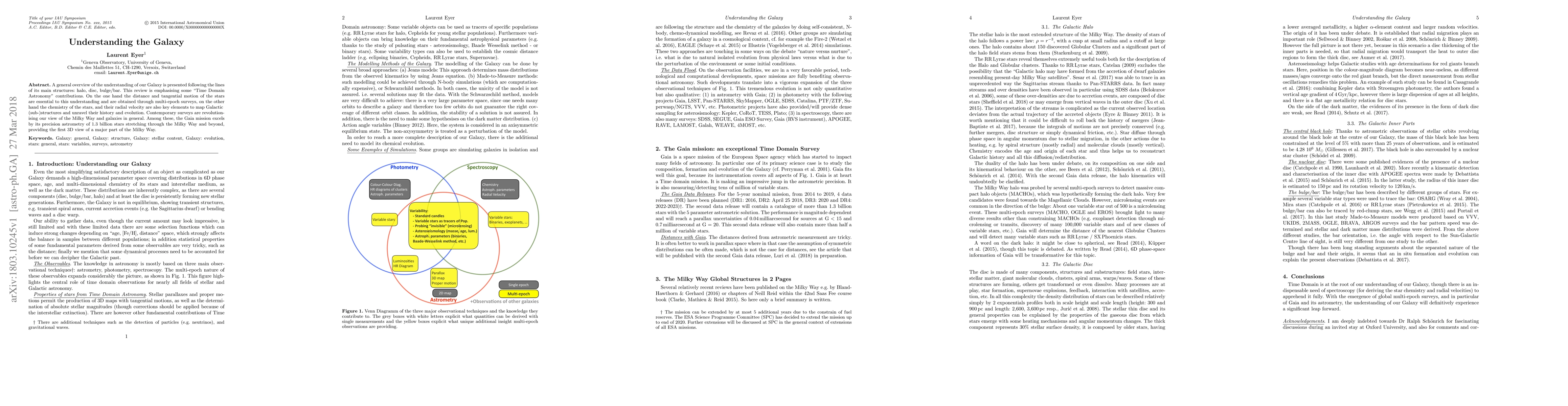 A general overview of the understanding of our Galaxy is presented following the lines of its main structures: halo, disc, bulge/bar. This review is emphasising some "Time Domain Astronomy" contributions. On the one hand the distance and tangential motion of the stars are essential to this understanding and are obtained through multi-epoch surveys, on the other hand the chemistry of the stars, and their radial velocity are also key elements to map Galactic (sub-)structures and unravel their history and evolution. Contemporary surveys are revolutionising our view of the Milky Way and galaxies in general. Among these, the Gaia mission excels by its precision astrometry of 1.3 billion stars stretching through the Milky Way and beyond, providing the first 3D view of a major part of the Milky Way.