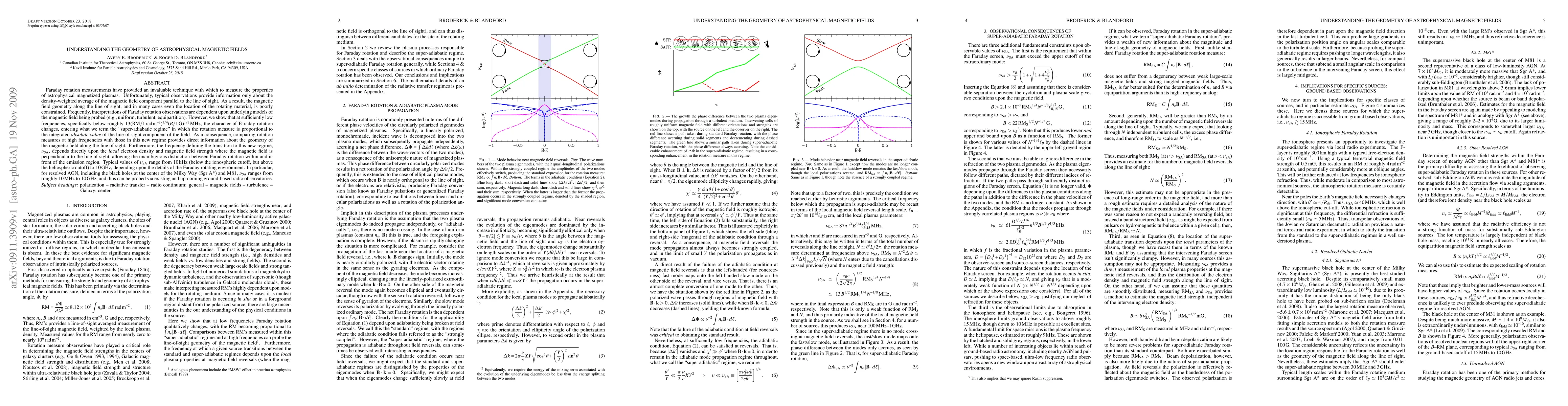 Faraday rotation measurements have provided an invaluable technique with which to measure the properties of astrophysical magnetized plasmas. Unfortunately, typical observations provide information only about the density-weighted average of the magnetic field component parallel to the line of sight. As a result, the magnetic field geometry along the line of sight, and in many cases even the location of the rotating material, is poorly constrained. Frequently, interpretations of Faraday rotation observations are dependent upon underlying models of the magnetic field being probed (e.g., uniform, turbulent, equipartition). However, we show that at sufficiently low frequencies, specifically below roughly 13 (RM/rad m^-2)^(1/4) (B/G)^(1/2) MHz, the character of Faraday rotation changes, entering what we term the ``super-adiabatic regime'' in which the rotation measure is proportional to the integrated absolute value of the line-of-sight component of the field. As a consequence, comparing rotation measures at high frequencies with those in this new regime provides direct information about the geometry of the magnetic field along the line of sight. Furthermore, the frequency defining the transition to this new regime, nu_SA, depends directly upon the local electron density and magnetic field strength where the magnetic field is perpendicular to the line of sight, allowing the unambiguous distinction between Faraday rotation within and in front of the emission region. Typical values of nu_SA range from 10 kHz to 10 GHz, depending upon the details of the Faraday rotating environment. In particular, for resolved AGN, including the black holes at the center of the Milky Way (Sgr A*) and M81, nu_SA ranges from roughly 10 MHz to 10 GHz, and thus can be probed via existing and up-coming ground-based radio observatories.