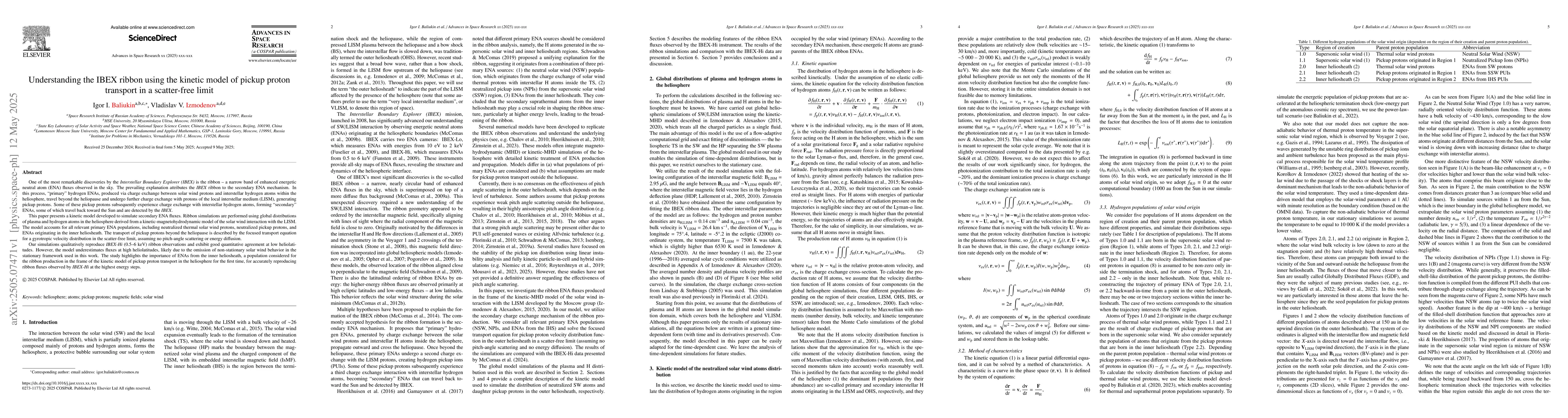 A new kinetic model simulates secondary ENA fluxes from the IBEX ribbon, reproducing low-latitude observations with good accuracy, but underestimating high-latitude fluxes due to omitted non-stationary solar wind behavior.