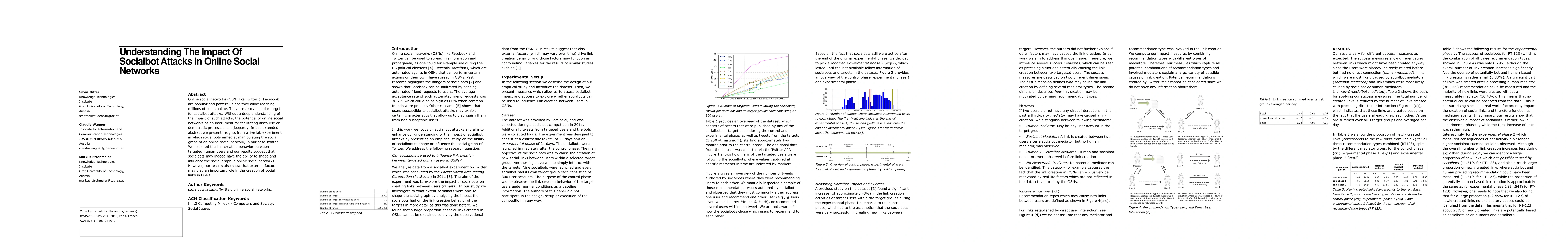 This study investigates the influence of socialbot attacks on online social networks, particularly Twitter, through a live lab experiment. Findings suggest that socialbots can manipulate social graph connections, but the impact is also influenced by external factors.