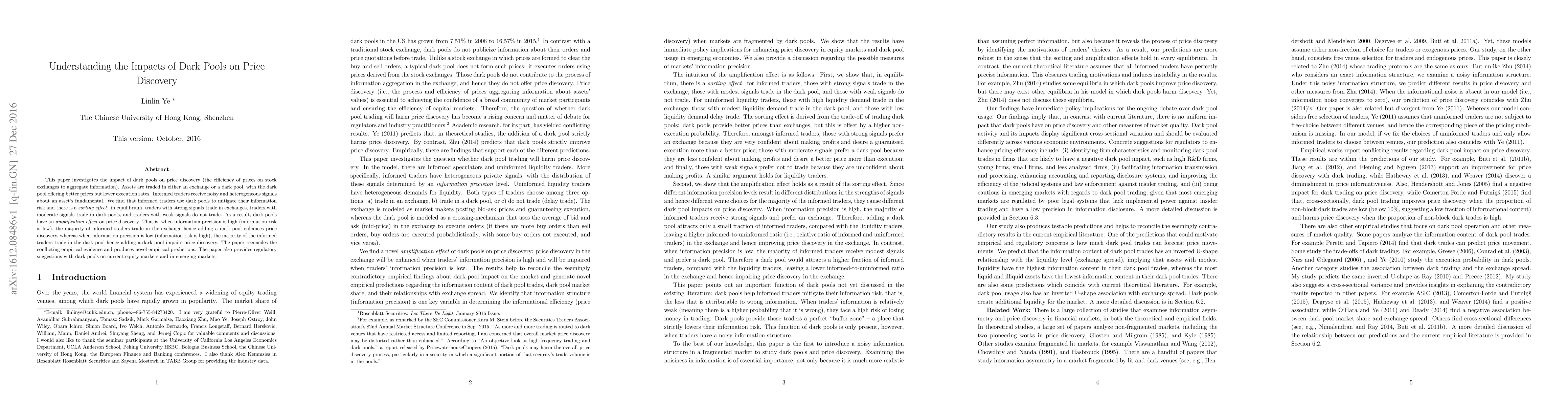 This paper explores how dark pools affect price discovery by analyzing informed traders' behavior, finding that dark pools enhance price discovery when information is precise but impair it when information is noisy. It reconciles conflicting empirical evidence and offers regulatory insights for equity markets.