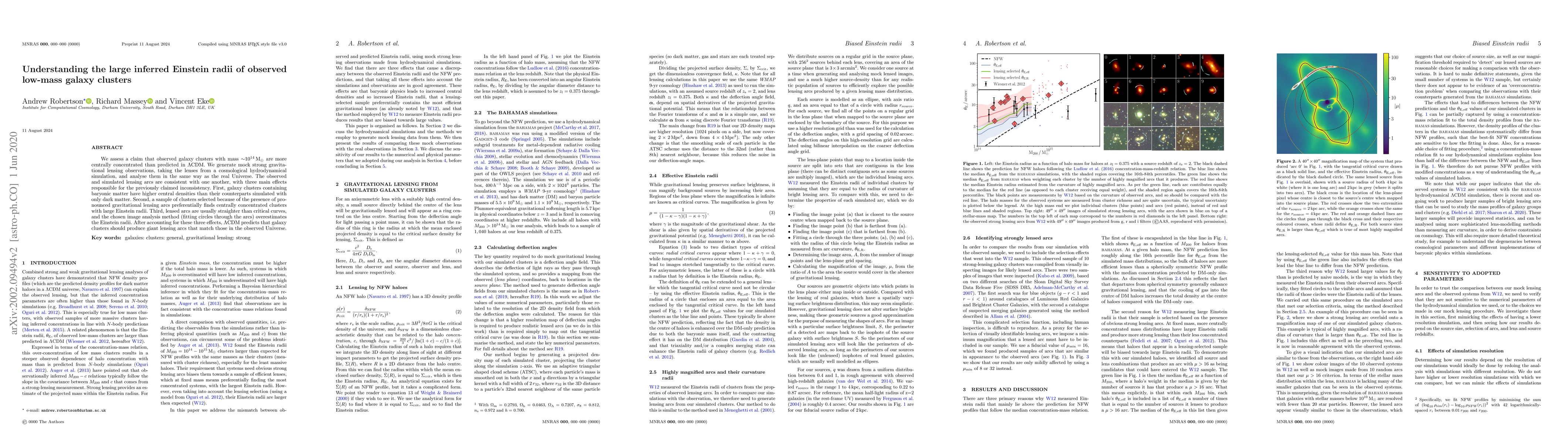 We assess a claim that observed galaxy clusters with mass ~10^14 Msun are more centrally concentrated than predicted in LCDM. We generate mock strong gravitational lensing observations, taking the lenses from a cosmological hydrodynamical simulation, and analyse them in the same way as the real Universe. The observed and simulated lensing arcs are consistent with one another, with three main effects responsible for the previously claimed inconsistency. First, galaxy clusters containing baryonic matter have higher central densities than their counterparts simulated with only dark matter. Second, a sample of clusters selected because of the presence of pronounced gravitational lensing arcs preferentially finds centrally concentrated clusters with large Einstein radii. Third, lensed arcs are usually straighter than critical curves, and the chosen image analysis method (fitting circles through the arcs) overestimates the Einstein radii. After accounting for these three effects, LCDM predicts that galaxy clusters should produce giant lensing arcs that match those in the observed Universe.