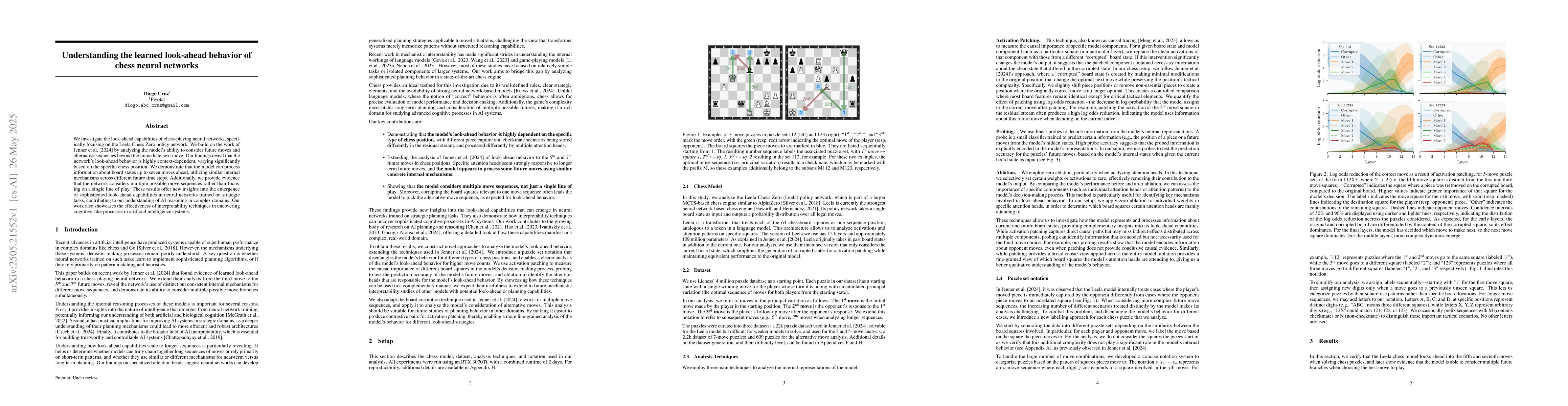 This work builds on Jenner et al.'s (2024) research by providing a more detailed analysis of the Leela Chess Zero network's look-ahead capabilities, uncovering its ability to process information up to seven moves ahead and consider multiple move sequences.
