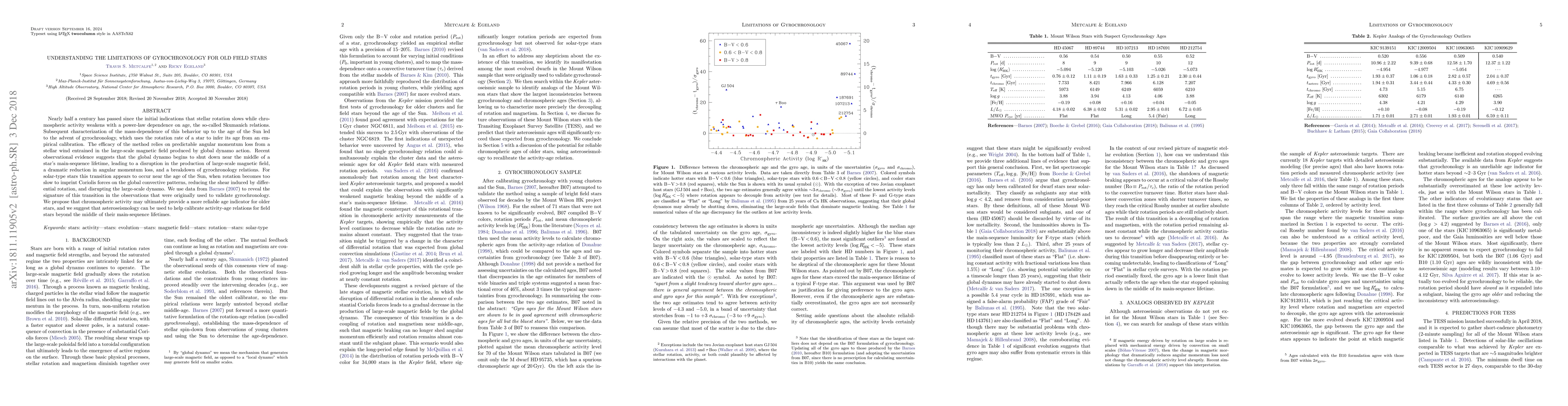 This paper discusses the limitations of gyrochronology for dating old field stars, noting that the method breaks down when stars reach mid-main sequence age due to the shutdown of the global dynamo and reduced angular momentum loss. The authors suggest chromospheric activity and asteroseismology as alternative age indicators for older stars.