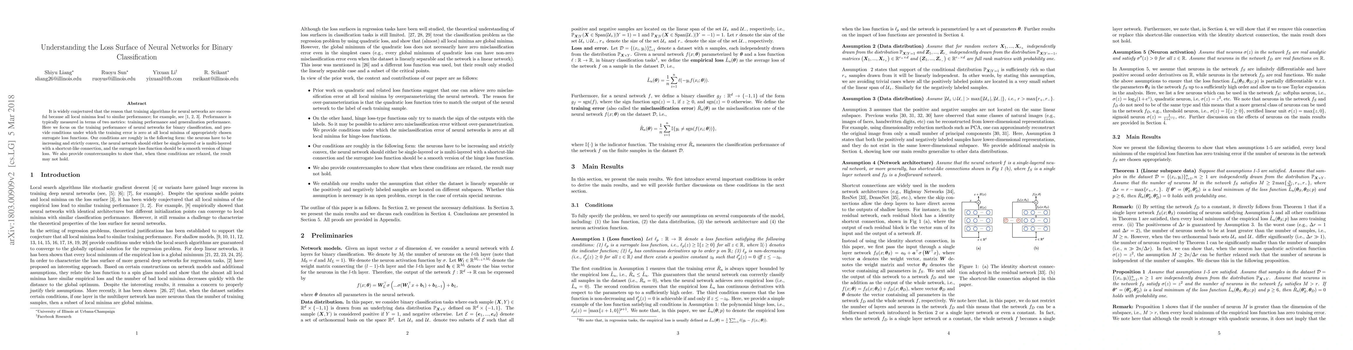 This research paper investigates the conditions under which a single-layered neural network achieves zero training error at all local minima for binary classification, providing insights into the properties of the loss function.