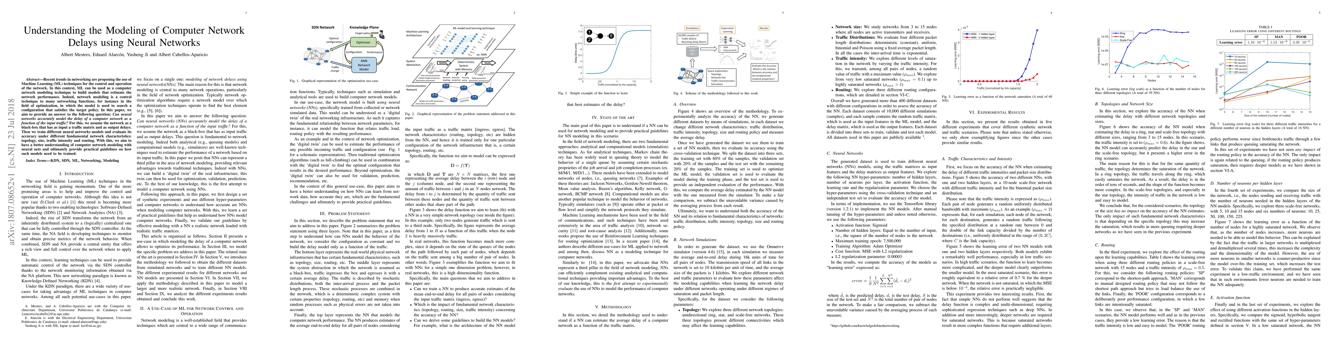 This paper investigates whether neural networks can accurately model computer network delays based on input traffic. It trains various neural network models to estimate network performance under different network characteristics and provides guidelines for effective training.