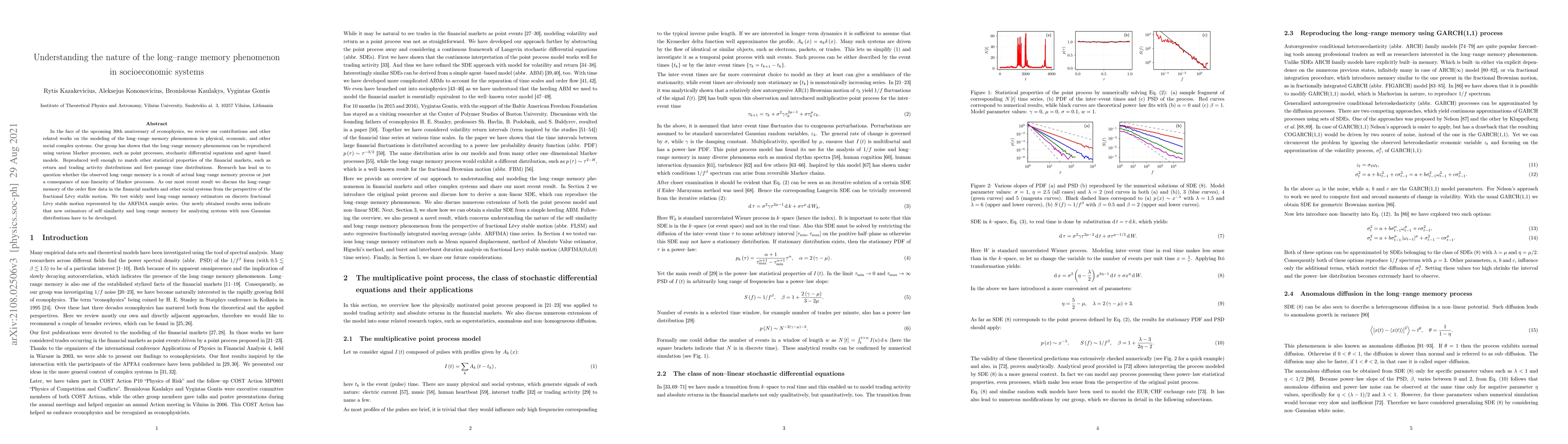 This paper reviews contributions to modeling long-range memory in socioeconomic systems, showing that various Markov processes can reproduce this phenomenon. The authors suggest that new estimators may be needed for systems with non-Gaussian distributions, as traditional methods may not fully capture the complexity of fractional Lévy stable motion.
