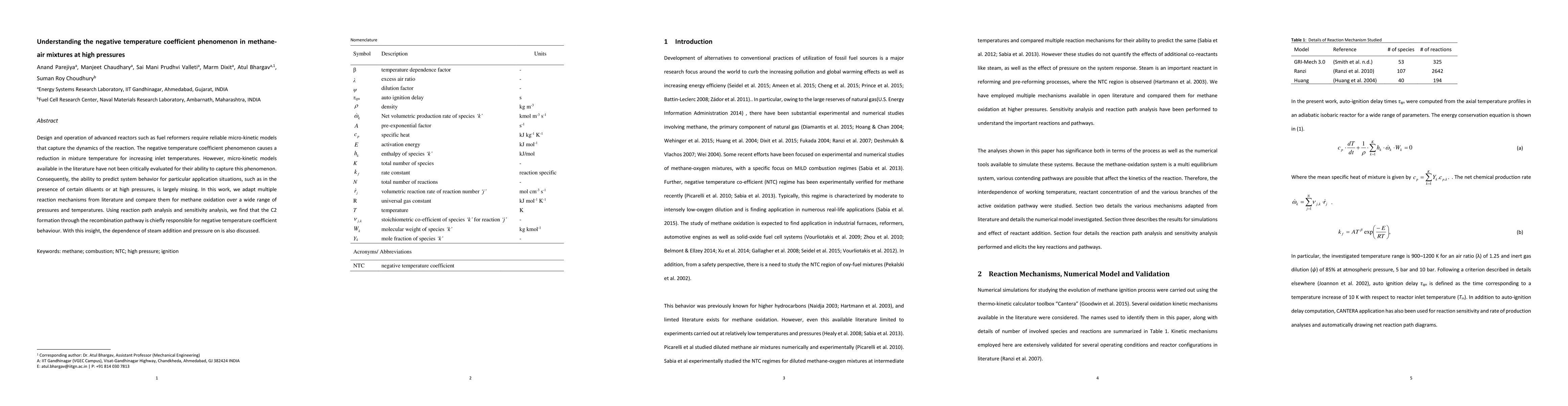 This paper evaluates micro-kinetic models for methane oxidation in methane-air mixtures at high pressures, identifying the negative temperature coefficient phenomenon. It finds that C2 formation via recombination is primarily responsible for this behavior, providing insights into the effects of steam addition and pressure.
