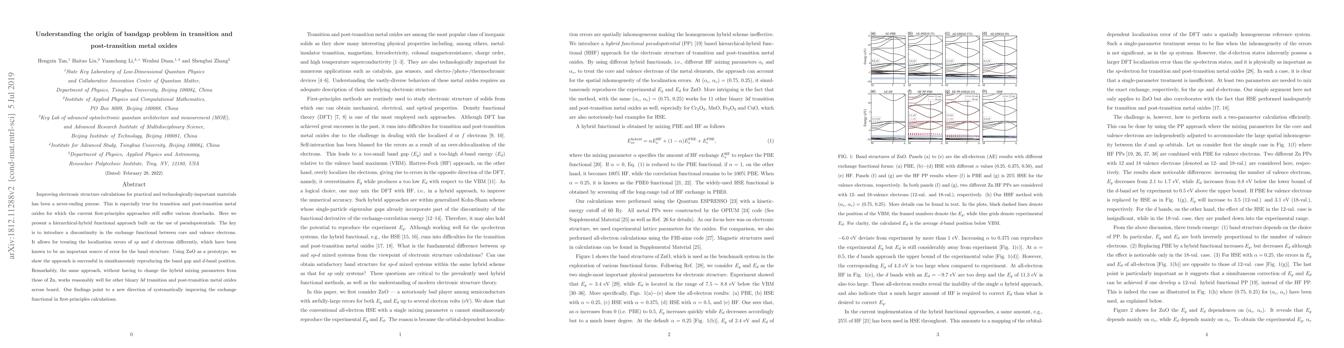 This paper proposes a hierarchical-hybrid functional approach to improve electronic structure calculations for transition and post-transition metal oxides, addressing the bandgap problem by treating core and valence electrons differently. The method successfully reproduces the band gap and d-band position in ZnO and extends effectively to other binary 3d metal oxides.