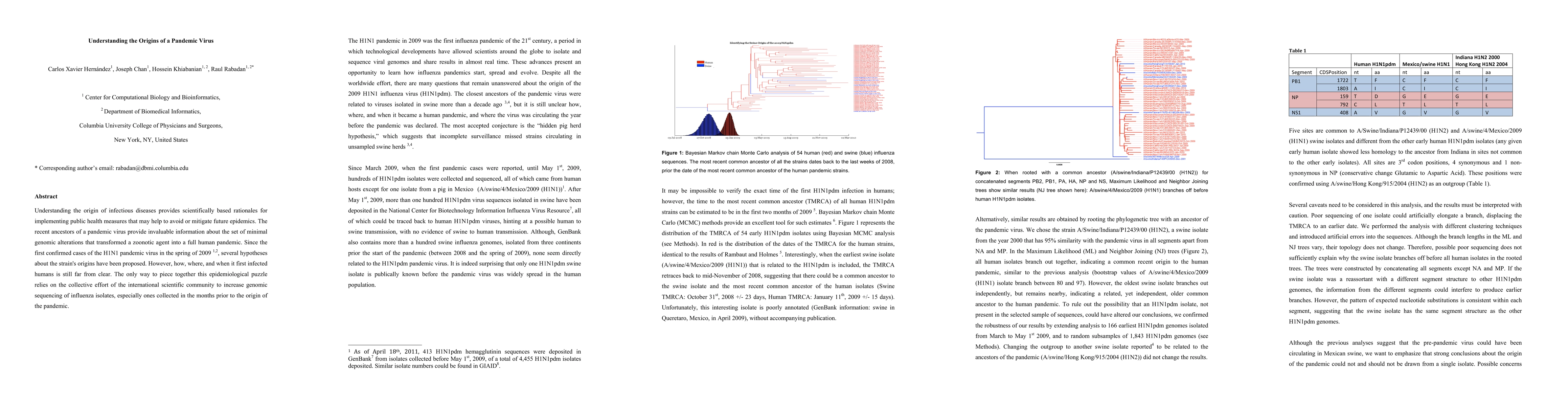 Understanding the origin of infectious diseases provides scientifically based rationales for implementing public health measures that may help to avoid or mitigate future epidemics. The recent ancestors of a pandemic virus provide invaluable information about the set of minimal genomic alterations that transformed a zoonotic agent into a full human pandemic. Since the first confirmed cases of the H1N1 pandemic virus in the spring of 2009, several hypotheses about the strain's origins have been proposed. However, how, where, and when it first infected humans is still far from clear. The only way to piece together this epidemiological puzzle relies on the collective effort of the international scientific community to increase genomic sequencing of influenza isolates, especially ones collected in the months prior to the origin of the pandemic.