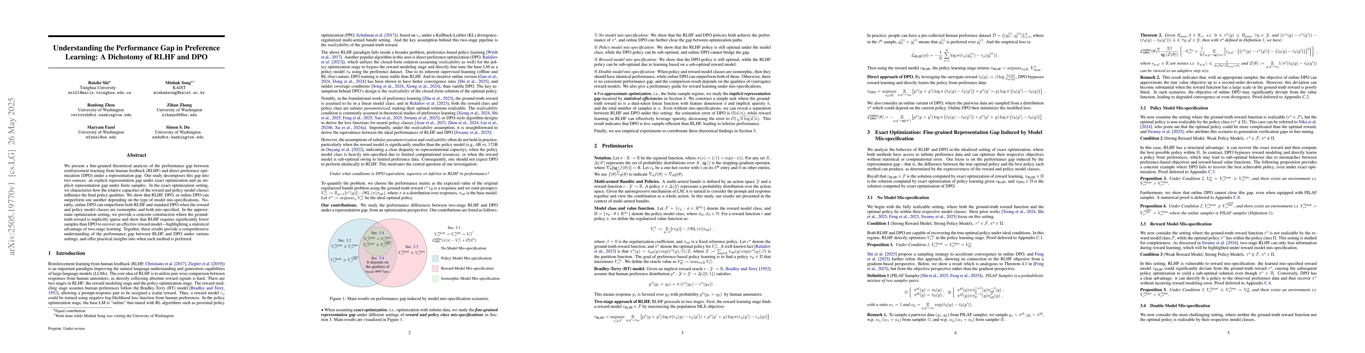 Researchers studied the performance gap between two methods for training AI models: RLHF (Reinforcement Learning from Human Feedback) and DPO (Direct Preference Optimization). They found that one method can outperform the other depending on the type of model mis-specifications, with online DPO sometimes performing better than both RLHF and standard DPO.