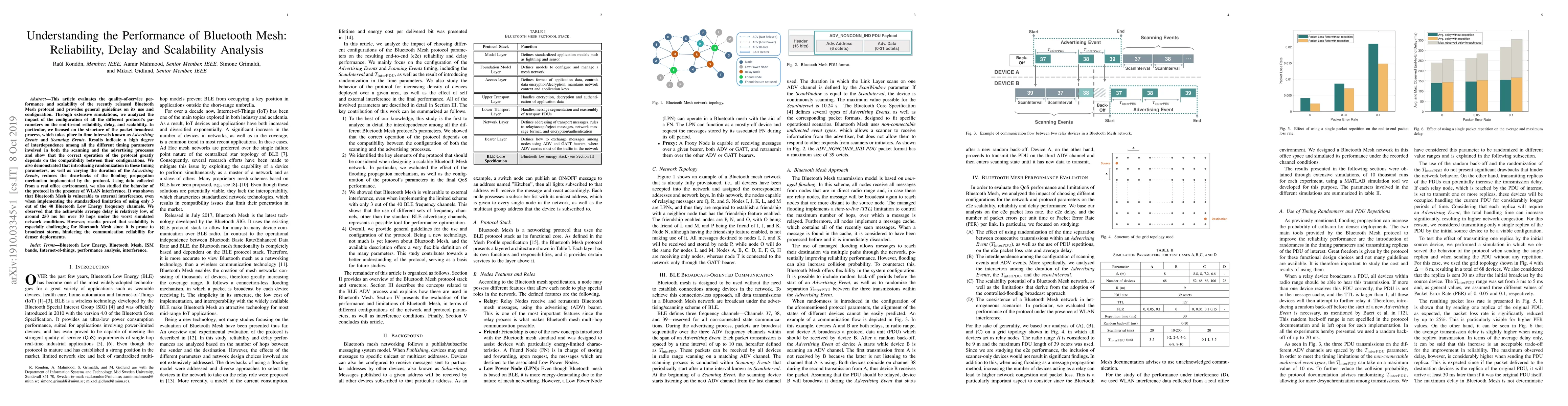 This paper evaluates Bluetooth Mesh protocol's reliability, delay, and scalability through simulations and real-world data, revealing significant interdependence among timing parameters and vulnerability to WLAN interference. It concludes that while average delay is low, scalability remains challenging due to broadcast storm issues.