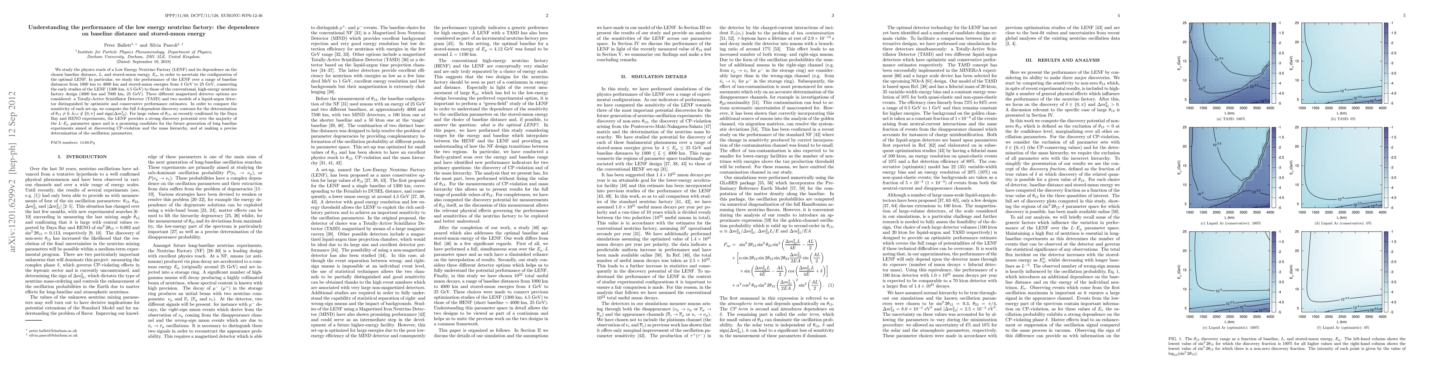 Motivated by recent hints of large {\theta}13 from the T2K, MINOS and Double Chooz experiments, we study the physics reach of a Low Energy Neutrino Factory (LENF) and its dependence on the chosen baseline distance, L, and stored-muon energy, E_{\mu}, in order to ascertain the configuration of the optimal LENF. In particular, we study the performance of the LENF over a range of baseline distances from 1000 km to 4000 km and stored-muon energies from 4 GeV to 25 GeV, connecting the early studies of the LENF (1300 km, 4.5 GeV) to those of the conventional, high-energy neutrino factory design (4000 km and 7000 km, 25 GeV). Three different magnetized detector options are considered: a Totally-Active Scintillator Detector (TASD) and two models of a liquid-argon detector distinguished by optimistic and conservative performance estimates. In order to compare the sensitivity of each set-up, we compute the full {\delta}-dependent discovery contours for the determination of non-zero {\theta}13, CP-violating values of {\delta} and the mass hierarchy. In the case of large {\theta}13 with sin^2(2*{\theta}13) = (few)*10^{-3}, the LENF provides a strong discovery potential over the majority of the L-E_{\mu} parameter space and is a promising candidate for the future generation of long baseline experiments aimed at discovering CP-violation and the mass hierarchy, and at making a precise determination of the oscillation parameters.