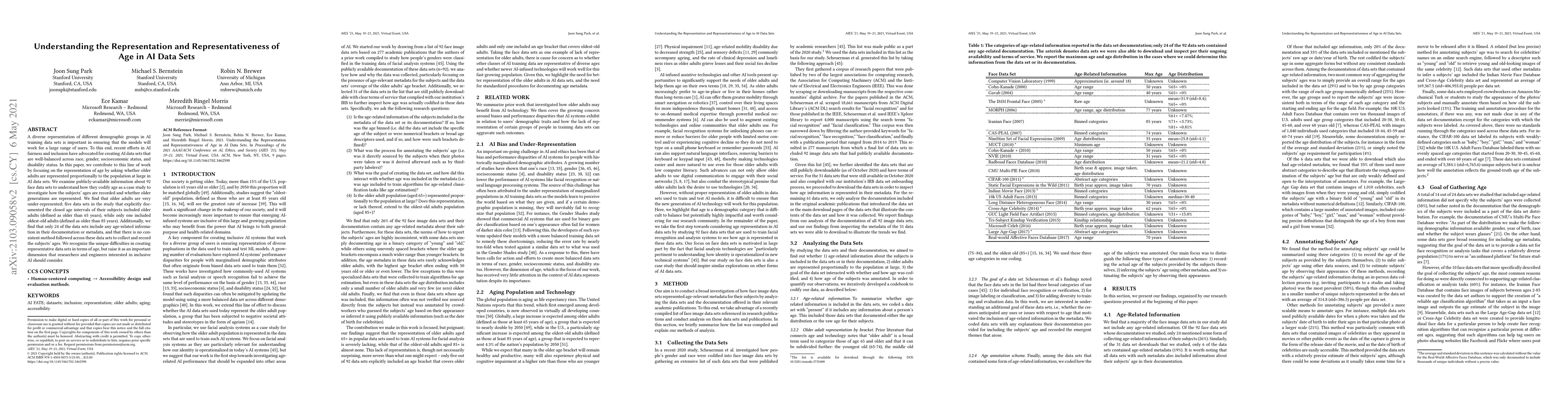 This paper investigates the representation of age in AI training datasets, finding that older adults are significantly under-represented. Only five out of 92 examined datasets included older adults, and none included the oldest-old, highlighting the need for more inclusive data collection methods.