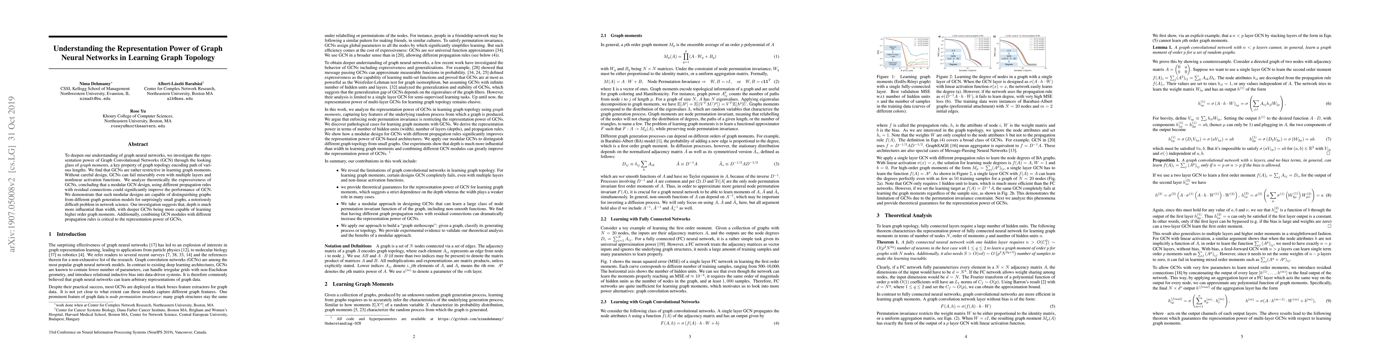 This paper investigates the limitations of Graph Convolutional Networks (GCNs) in learning graph topology, finding that GCNs struggle with graph moments. The study proposes a modular GCN design with different propagation rules and residual connections to enhance representation power, demonstrating that depth is more influential than width for learning higher-order graph moments.