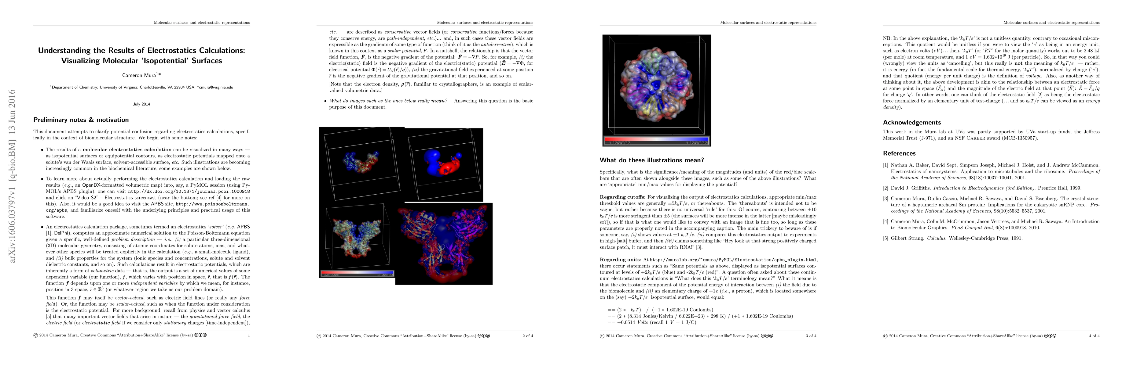 This document attempts to clarify potential confusion regarding electrostatics calculations, specifically in the context of biomolecular structure and specifically as regards the units typically used to contour/visualize isopotential surfaces, potentials mapped onto molecular solvent-accessible surfaces, etc.