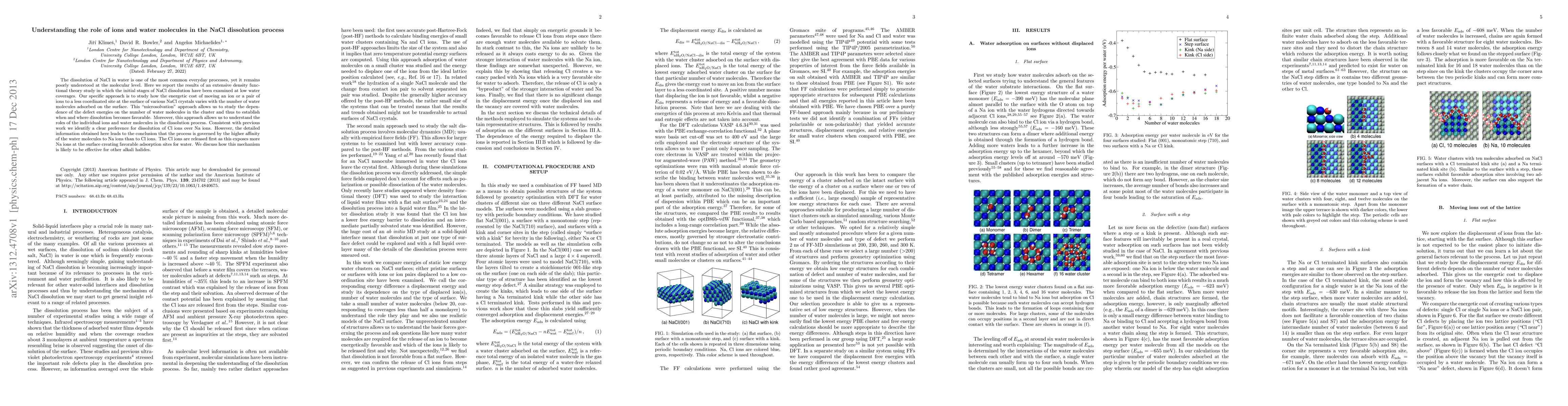 Researchers used density functional theory to study how ions and water molecules affect the dissolution of NaCl in water, finding that the process is governed by a higher affinity for Na ions than Cl ions.