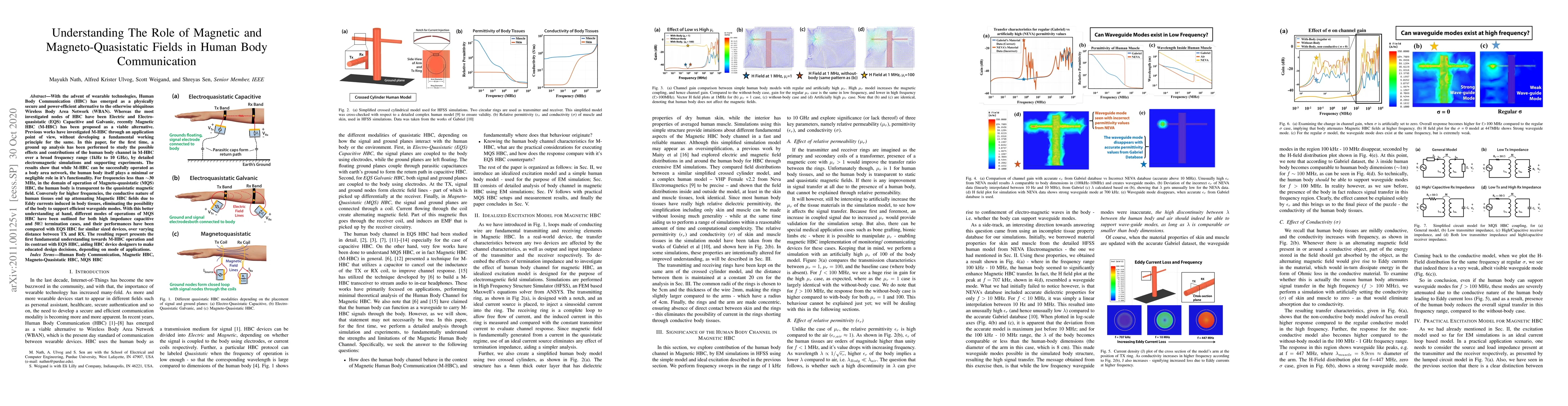 With the advent of wearable technologies, Human Body Communication (HBC) has emerged as a physically secure and power-efficient alternative to the otherwise ubiquitous Wireless Body Area Network (WBAN). Whereas the most investigated nodes of HBC have been Electric and Electro-quasistatic (EQS) Capacitive and Galvanic, recently Magnetic HBC (M-HBC) has been proposed as a viable alternative. Previous works have investigated M-HBC through an application point of view, without developing a fundamental working principle for the same. In this paper, for the first time, a ground up analysis has been performed to study the possible effects and contributions of the human body channel in M-HBC over a broad frequency range (1kHz to 10 GHz), by detailed electromagnetic simulations and supporting experiments. The results show that while M-HBC can be successfully operated as a body area network, the human body itself plays a minimal or negligible role in it's functionality. For frequencies less than about 30 MHz, in the domain of operation of Magneto-quasistatic (MQS) HBC, the human body is transparent to the quasistatic magnetic field. Conversely for higher frequencies, the conductive nature of human tissues end up attenuating Magnetic HBC fields due to Eddy currents induced in body tissues, eliminating the possibility of the body to support efficient waveguide modes. With this better understanding at hand, different modes of operations of MQS HBC have been outlined for both high impedance capacitive and 50 Ohm termination cases, and their performances have been compared with EQS HBC for similar sized devices, over varying distance between TX and RX. The resulting report presents the first fundamental understanding towards M-HBC operation and its contrast with EQS HBC, aiding HBC device designers to make educated design decisions, depending on mode of applications.