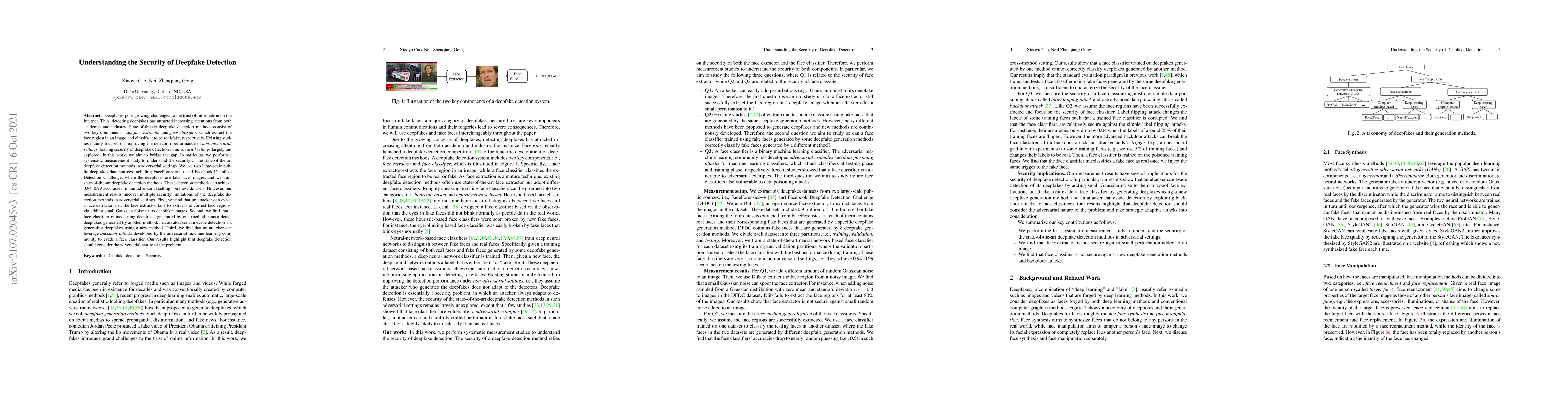 Deepfakes pose growing challenges to the trust of information on the Internet. Thus, detecting deepfakes has attracted increasing attentions from both academia and industry. State-of-the-art deepfake detection methods consist of two key components, i.e., face extractor and face classifier, which extract the face region in an image and classify it to be real/fake, respectively. Existing studies mainly focused on improving the detection performance in non-adversarial settings, leaving security of deepfake detection in adversarial settings largely unexplored. In this work, we aim to bridge the gap. In particular, we perform a systematic measurement study to understand the security of the state-of-the-art deepfake detection methods in adversarial settings. We use two large-scale public deepfakes data sources including FaceForensics++ and Facebook Deepfake Detection Challenge, where the deepfakes are fake face images; and we train state-of-the-art deepfake detection methods. These detection methods can achieve 0.94--0.99 accuracies in non-adversarial settings on these datasets. However, our measurement results uncover multiple security limitations of the deepfake detection methods in adversarial settings. First, we find that an attacker can evade a face extractor, i.e., the face extractor fails to extract the correct face regions, via adding small Gaussian noise to its deepfake images. Second, we find that a face classifier trained using deepfakes generated by one method cannot detect deepfakes generated by another method, i.e., an attacker can evade detection via generating deepfakes using a new method. Third, we find that an attacker can leverage backdoor attacks developed by the adversarial machine learning community to evade a face classifier. Our results highlight that deepfake detection should consider the adversarial nature of the problem.