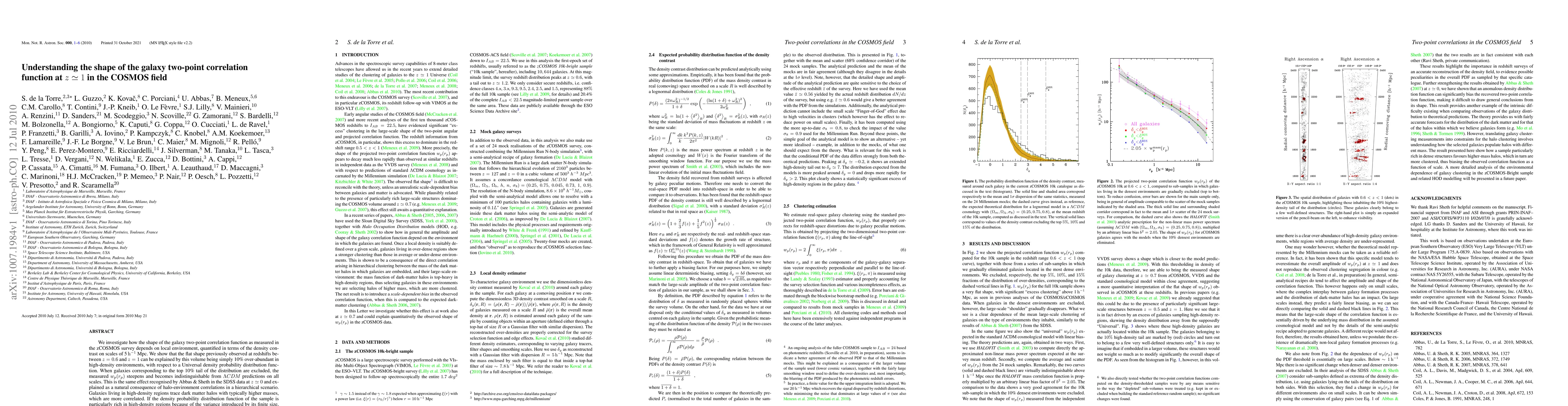 This study reveals that the flat shape of the galaxy two-point correlation function at z~1 in the COSMOS field is due to a 10% overabundance in high-density environments, which distorts the correlation function. Excluding these top 10% density galaxies aligns the correlation function with LCDM predictions.