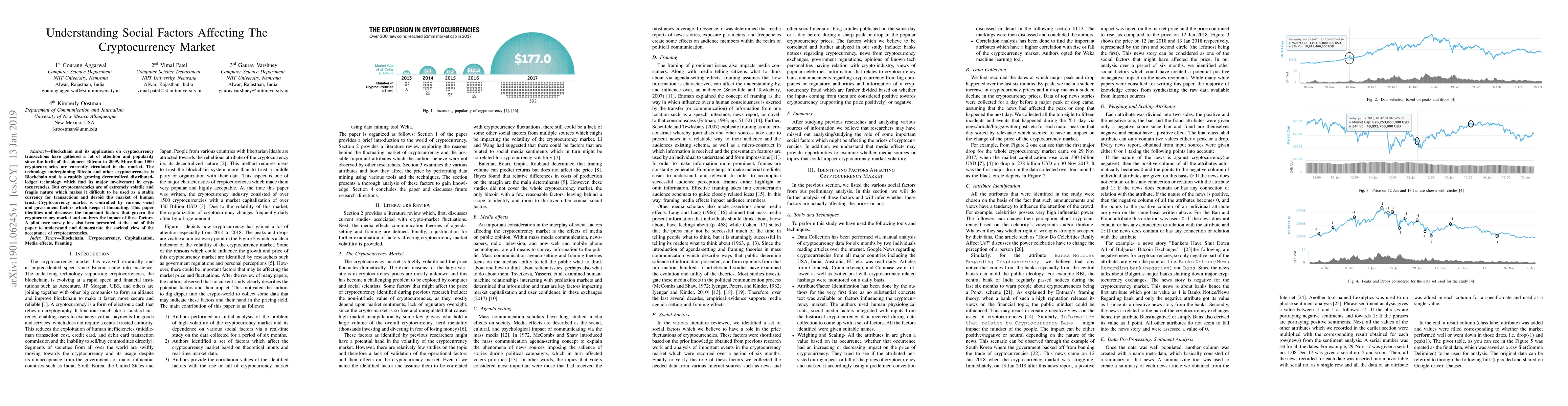 Blockchain and its application on cryptocurrency transactions have gathered a lot of attention and popularity since the birth of the pioneer Bitcoin in 2009. More than 1500 cryptocurrencies are currently circulated in the market. The technology underpinning Bitcoin and other cryptocurrencies is Blockchain and is a rapidly growing decentralized distributed ledger technology which find its major involvement in cryptocurrencies. But cryptocurrencies are of extremely volatile and fragile nature which makes it difficult to be used as a stable currency for transactions and devoid this market of human trust. Cryptocurrency market is controlled by various social and government factors which keeps it fluctuating. This paper identifies and discusses the important factors that govern the cryptocurrency market and analyzes the impact of these factors. A pilot user survey has also been presented at the end of this paper to understand and demonstrate the societal view of the acceptance of cryptocurrencies.