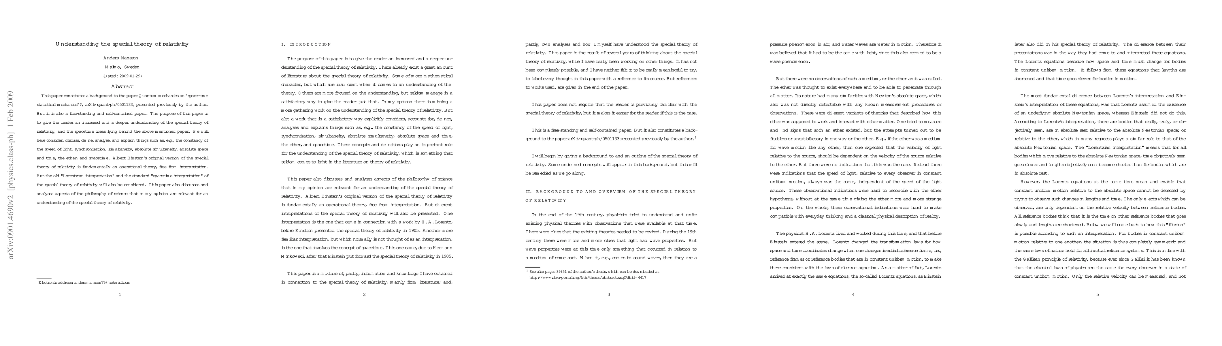 This paper constitutes a background to the paper 'Quantum mechanics as "space-time statistical mechanics"?', arXiv:quant-ph/0501133, presented previously by the author. But it is also a free-standing and self-contained paper. The purpose of this paper is to give the reader an increased and a deeper understanding of the special theory of relativity, and the spacetime ideas lying behind the above mentioned paper. We will here consider, discuss, define, analyse, and explain things such as, e.g., the constancy of the speed of light, synchronization, simultaneity, absolute simultaneity, absolute space and time, the ether, and spacetime. Albert Einstein's original version of the special theory of relativity is fundamentally an operational theory, free from interpretation. But the old "Lorentzian interpretation" and the standard "spacetime interpretation" of the special theory of relativity will also be considered. This paper also discusses and analyses aspects of the philosophy of science that in my opinion are relevant for an understanding of the special theory of relativity.