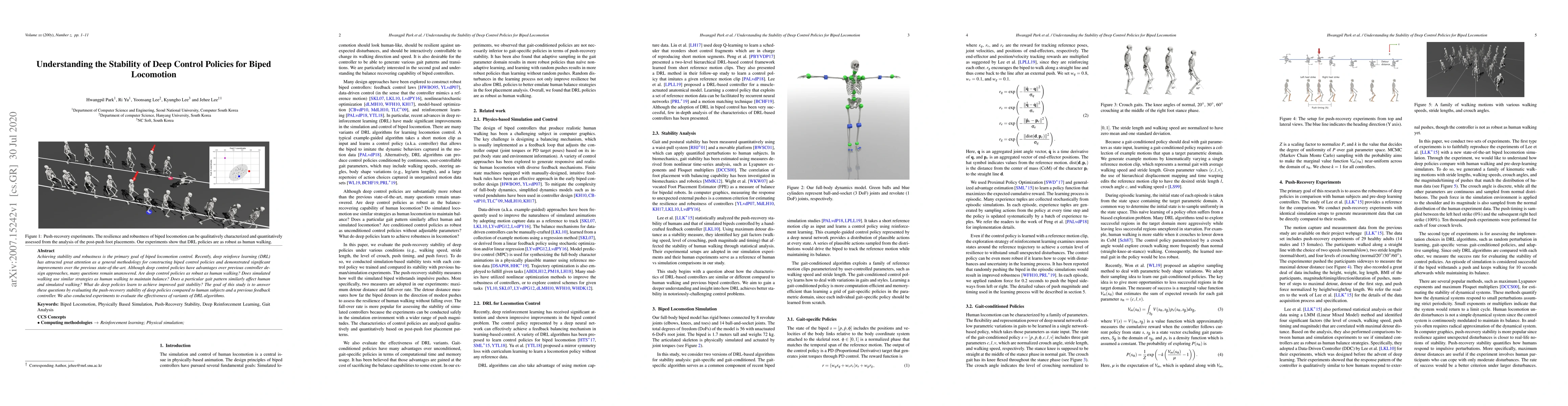 This paper investigates the stability and robustness of deep reinforcement learning (DRL) policies for biped locomotion, comparing them against human walking and traditional controllers. It aims to determine if DRL achieves similar balance strategies and gait stability as humans, and evaluates various DRL algorithm variants for their effectiveness.