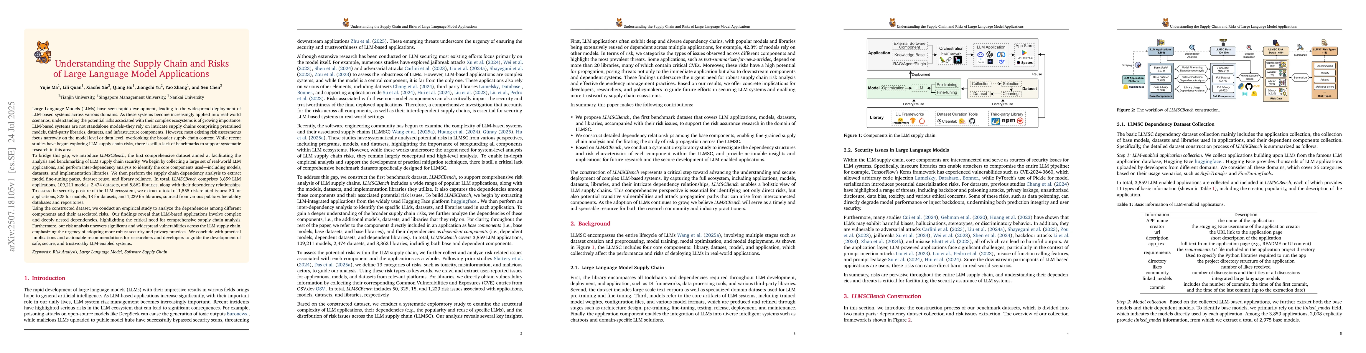 The rise of Large Language Models (LLMs) has led to the widespread deployment of LLM-based systems across diverse domains. As these systems proliferate, understanding the risks associated with their complex supply chains is increasingly important. LLM-based systems are not standalone as they rely on interconnected supply chains involving pretrained models, third-party libraries, datasets, and infrastructure. Yet, most risk assessments narrowly focus on model or data level, overlooking broader supply chain vulnerabilities. While recent studies have begun to address LLM supply chain risks, there remains a lack of benchmarks for systematic research. To address this gap, we introduce the first comprehensive dataset for analyzing and benchmarking LLM supply chain security. We collect 3,859 real-world LLM applications and perform interdependency analysis, identifying 109,211 models, 2,474 datasets, and 9,862 libraries. We extract model fine-tuning paths, dataset reuse, and library reliance, mapping the ecosystem's structure. To evaluate security, we gather 1,555 risk-related issues-50 for applications, 325 for models, 18 for datasets, and 1,229 for libraries from public vulnerability databases. Using this dataset, we empirically analyze component dependencies and risks. Our findings reveal deeply nested dependencies in LLM applications and significant vulnerabilities across the supply chain, underscoring the need for comprehensive security analysis. We conclude with practical recommendations to guide researchers and developers toward safer, more trustworthy LLM-enabled systems.