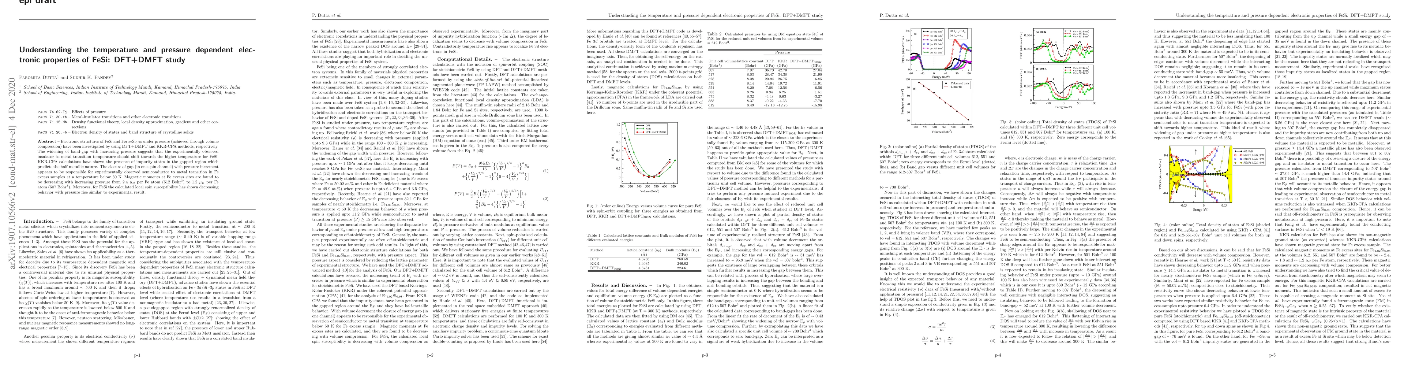 This study uses DFT+DMFT and KKR-CPA methods to investigate FeSi's electronic properties under pressure, revealing a widening band-gap with increasing pressure and predicting a higher insulator-to-metal transition temperature for FeSi. It also finds impurity states leading to half-metallic nature and a pressure-induced semiconductor-to-metal transition in Fe-rich samples.