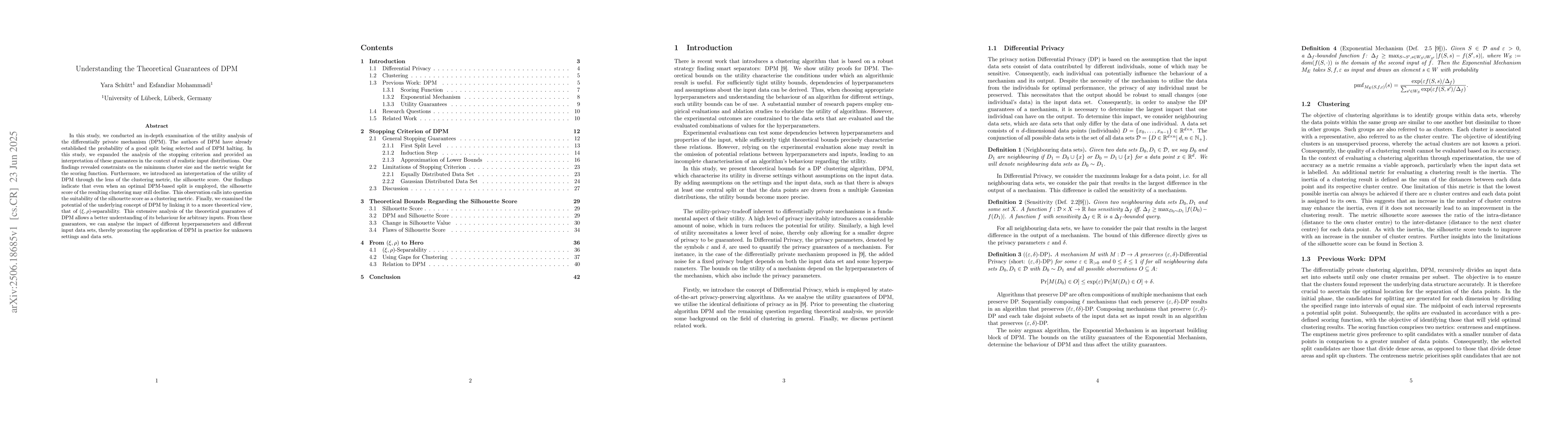 In this study, we conducted an in-depth examination of the utility analysis of the differentially private mechanism (DPM). The authors of DPM have already established the probability of a good split being selected and of DPM halting. In this study, we expanded the analysis of the stopping criterion and provided an interpretation of these guarantees in the context of realistic input distributions. Our findings revealed constraints on the minimum cluster size and the metric weight for the scoring function. Furthermore, we introduced an interpretation of the utility of DPM through the lens of the clustering metric, the silhouette score. Our findings indicate that even when an optimal DPM-based split is employed, the silhouette score of the resulting clustering may still decline. This observation calls into question the suitability of the silhouette score as a clustering metric. Finally, we examined the potential of the underlying concept of DPM by linking it to a more theoretical view, that of $(\xi, \rho)$-separability. This extensive analysis of the theoretical guarantees of DPM allows a better understanding of its behaviour for arbitrary inputs. From these guarantees, we can analyse the impact of different hyperparameters and different input data sets, thereby promoting the application of DPM in practice for unknown settings and data sets.